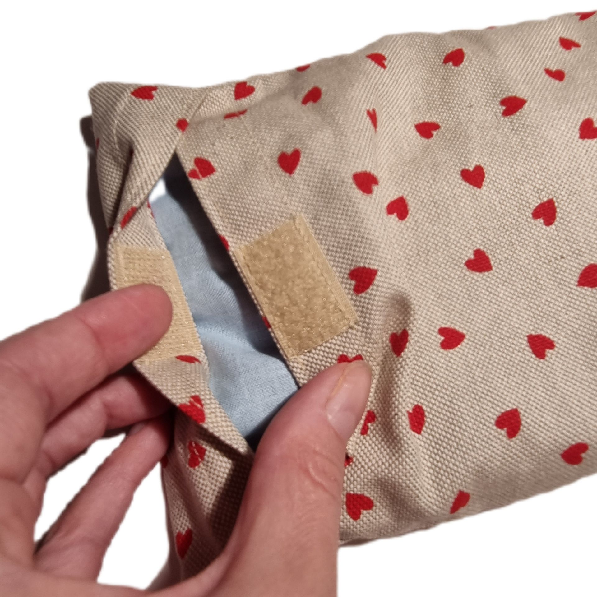Polštářek se skládá z vnitřního polštáře plněného pohankovými slupkami a vnějšího barevného potahu, který je snímatelný a pratelný na 40°C. Vnější potah se zapíná na suchý zip viz ilustrativní fotografie.