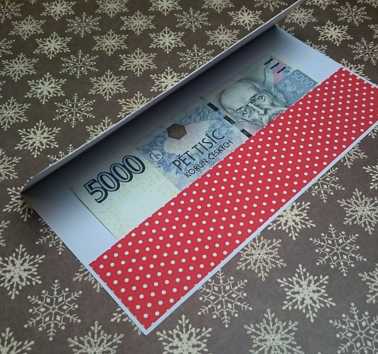 Vánoční blahopřání s kapsou na peníze, na dárkový poukaz, na vstupenky, na předplatné apod.