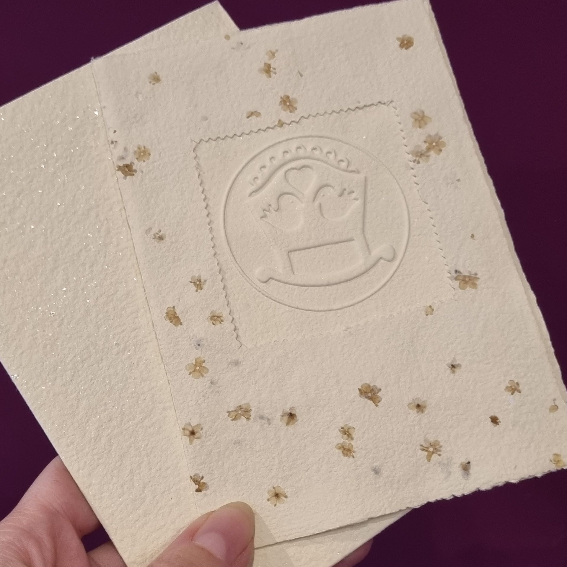 Jedná se o blahopřání z ručního papíru s zdobené autorskou kresbou. Součástí blahopřání je také barevně sladěná obálka taktéž z ručního papíru.