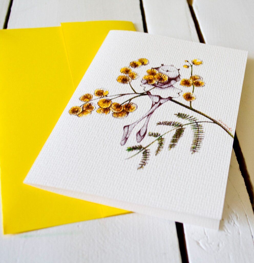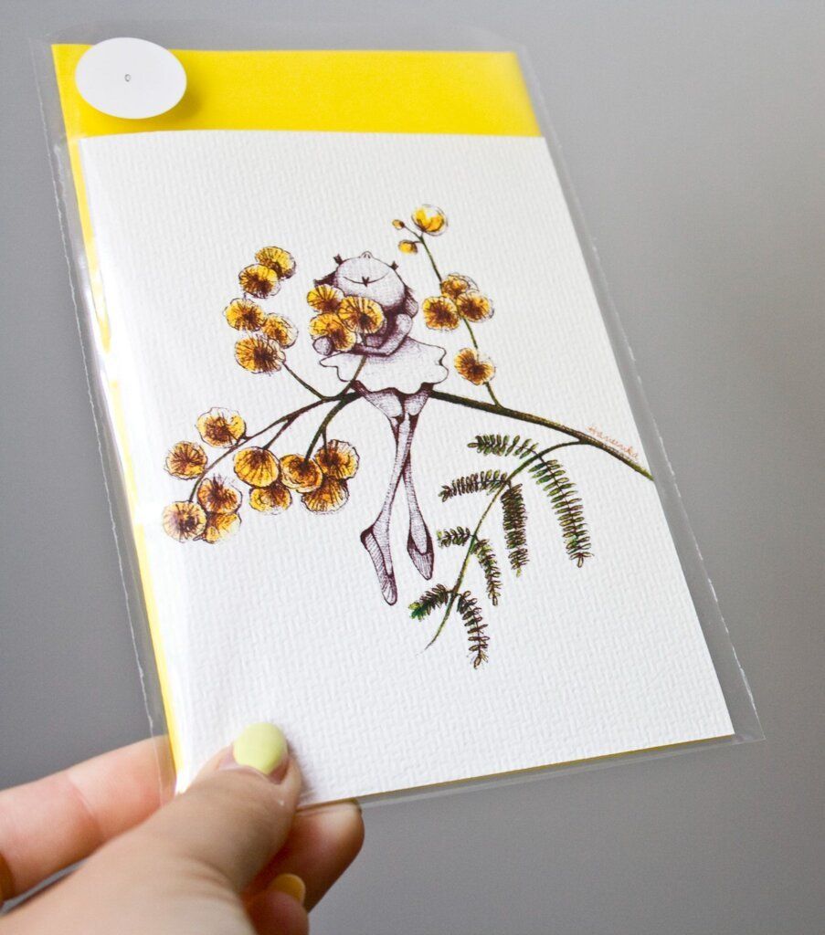 Blahopřání tištěné na specialní aquarelové čtvrtce 230g s mírným vzorem. Jedná se o reprodukci autorské kresby Hanunka. K přání patří i barevná obálka.