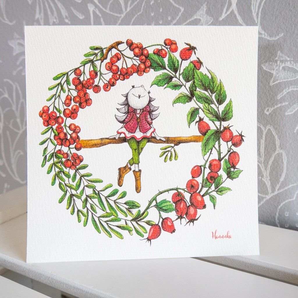 Blahopřání tištěné na specialní aquarelové čtvrtce 230g s mírným vzorem. Jedná se o reprodukci autorské kresby Hanunka. K přání patří i barevná obálka.