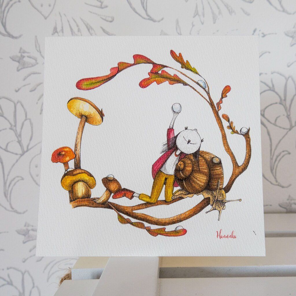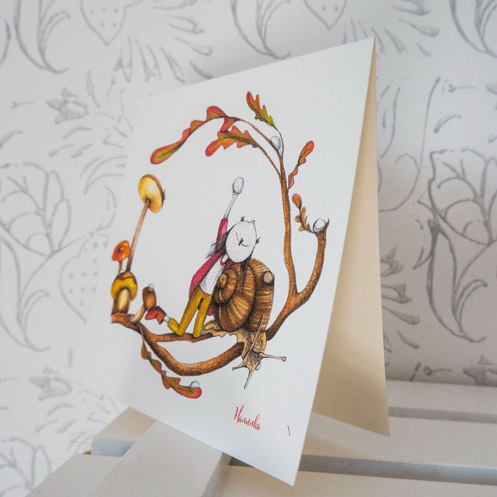 Blahopřání tištěné na specialní aquarelové čtvrtce 230g s mírným vzorem. Jedná se o reprodukci autorské kresby Hanunka. K přání patří i barevná obálka.