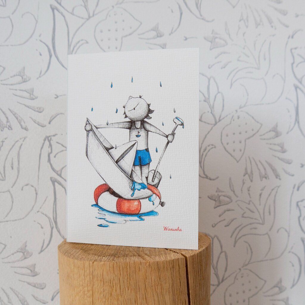Blahopřání tištěné na specialní aquarelové čtvrtce 230g s mírným vzorem. Jedná se o reprodukci autorské kresby Hanunka. K přání patří i barevná obálka.