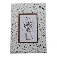 Ručně vyrobené blahopřání ze speciálních designových papírů. Blahopřání je zdobené originálním motivem se svatební tématikou. K přání patří také obálka. Podklad blahopřání i obálka jsou v barvě čistě bílé. Vše baleno v celofánovém sáčku. Blahopřání je uvnitř bez textu.