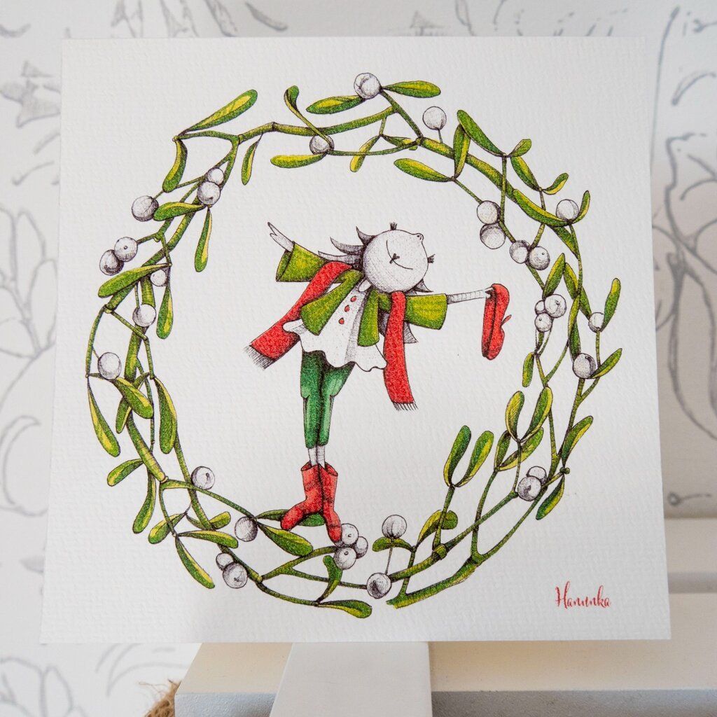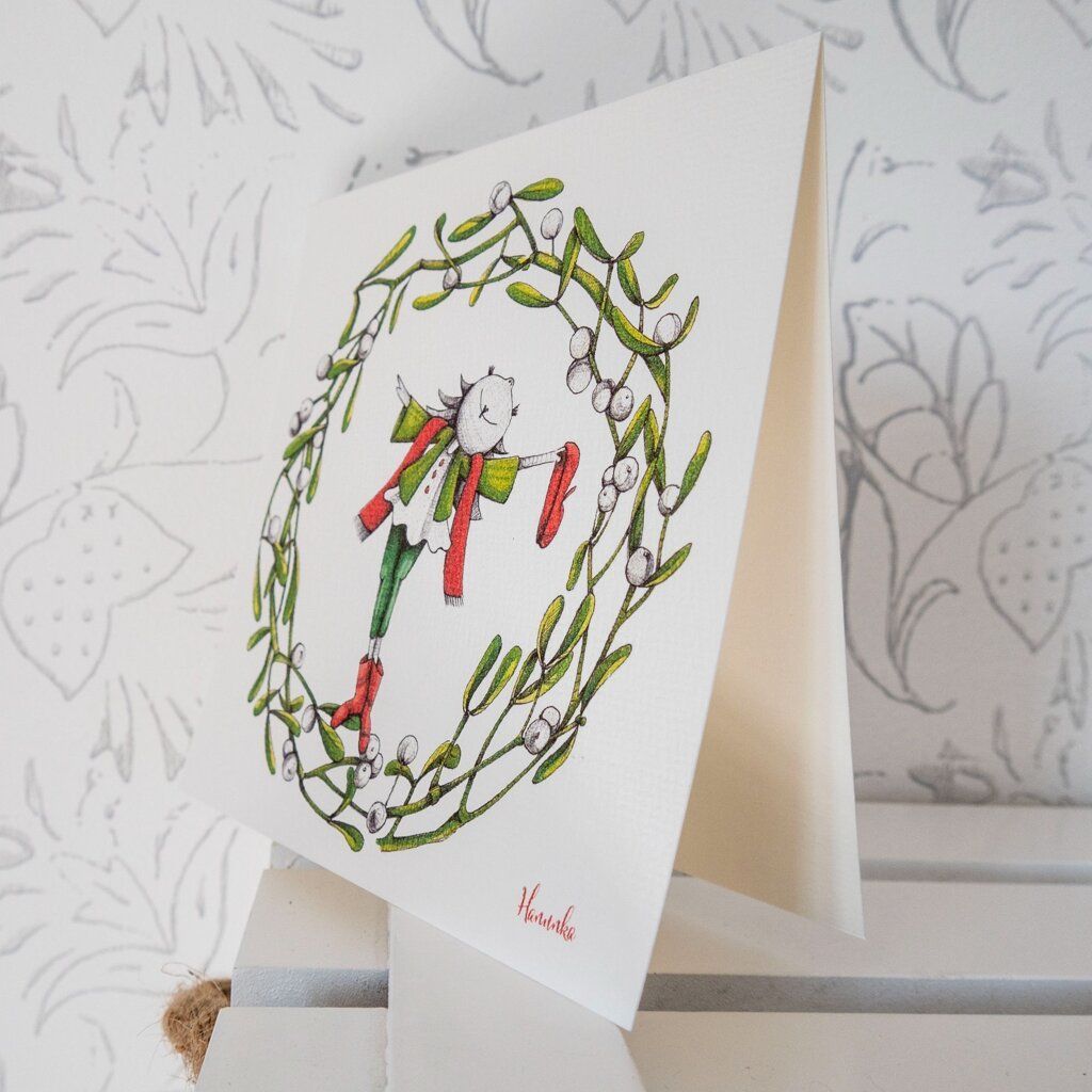 Blahopřání tištěné na specialní aquarelové čtvrtce 230g s mírným vzorem. Jedná se o reprodukci autorské kresby Hanunka. K přání patří i barevná obálka.