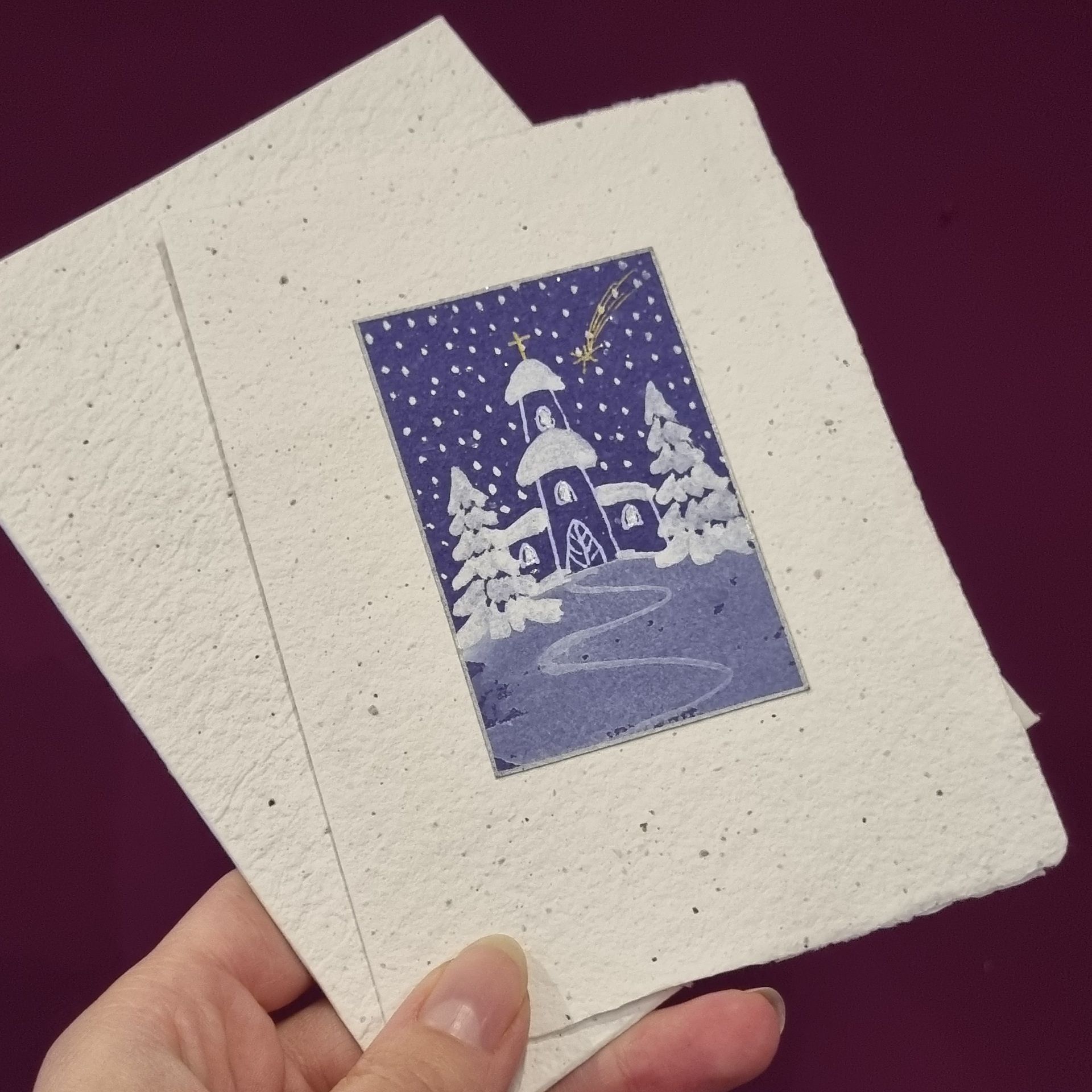 Jedná se o blahopřání z ručního papíru s originalní autorskou kresbou. Součástí blahopřání je také barevně sladěná obálka taktéž z ručního papíru.
