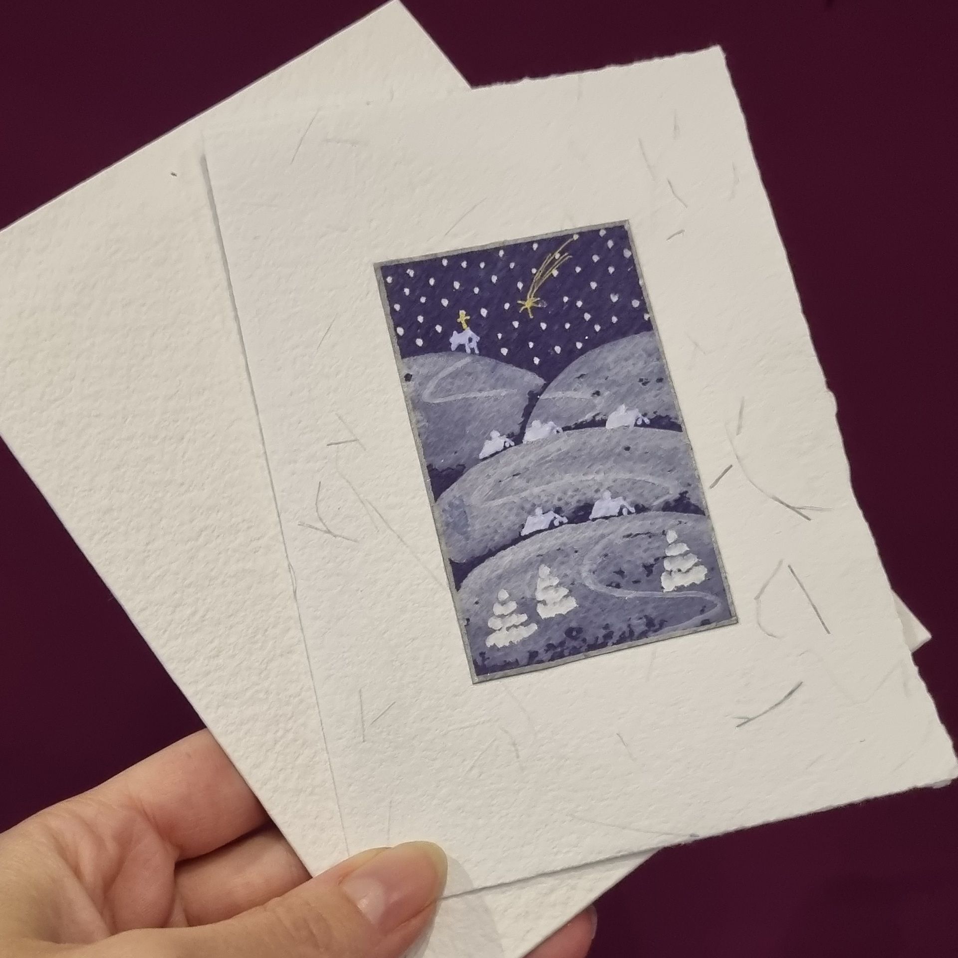 Jedná se o blahopřání z ručního papíru s originalní autorskou kresbou. Součástí blahopřání je také barevně sladěná obálka taktéž z ručního papíru.