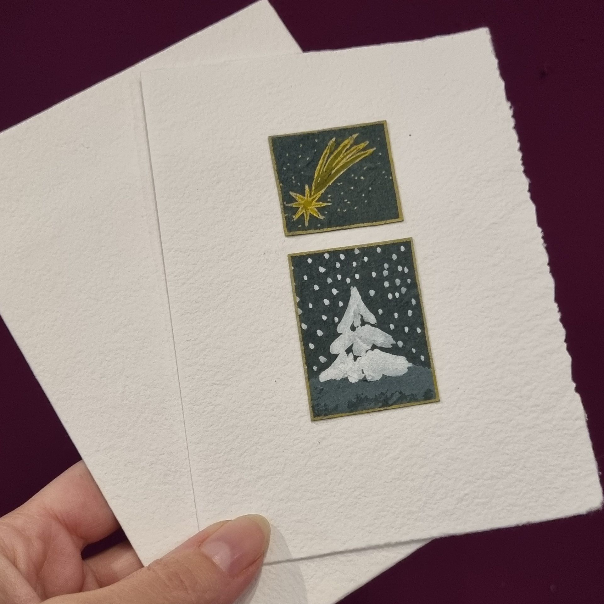 Jedná se o blahopřání z ručního papíru s originalní autorskou kresbou. Součástí blahopřání je také barevně sladěná obálka taktéž z ručního papíru.