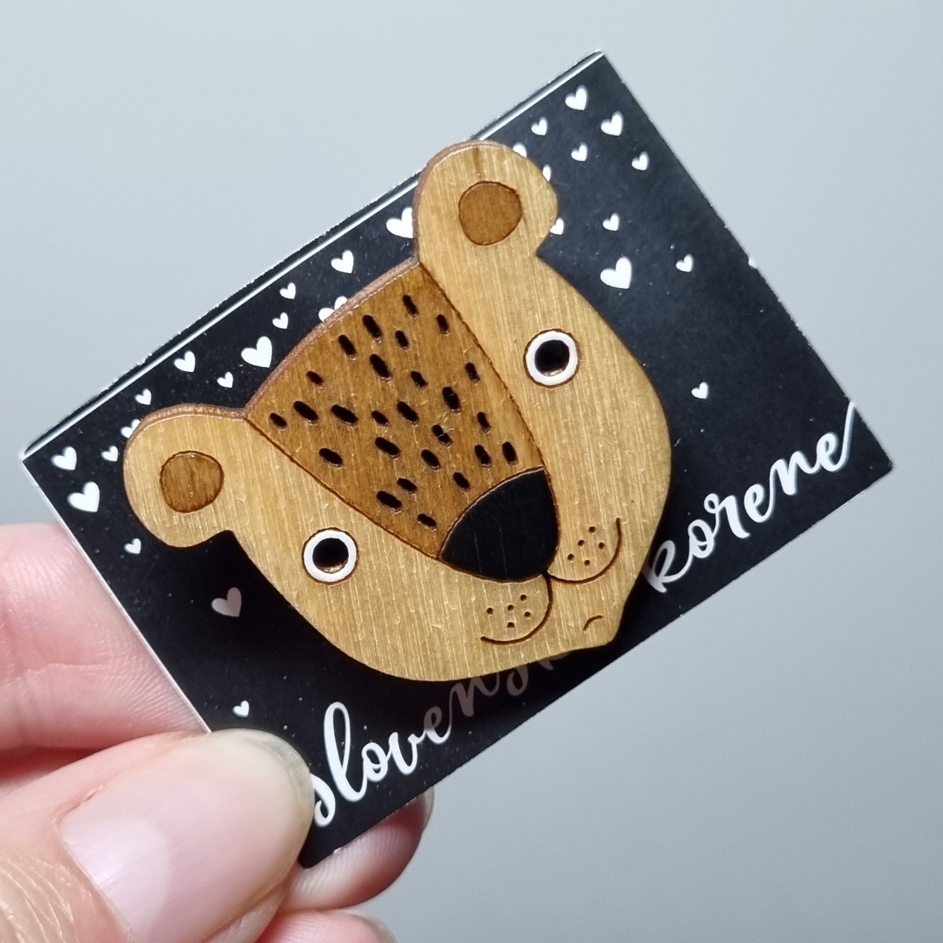 Originální ručně malovaná dřevěná brož. Zalakovaná.