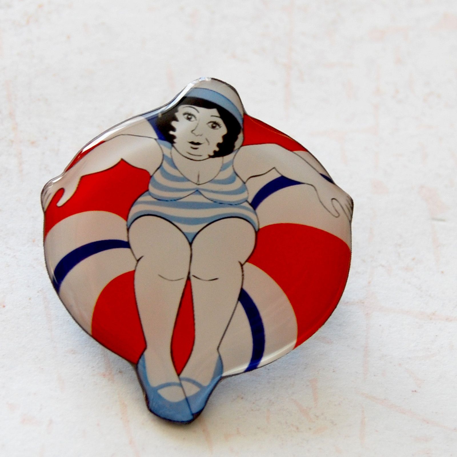 Ručně vyrobená brož z křišťálové pryskyřice, do které je zalitý autorský grafický motiv.