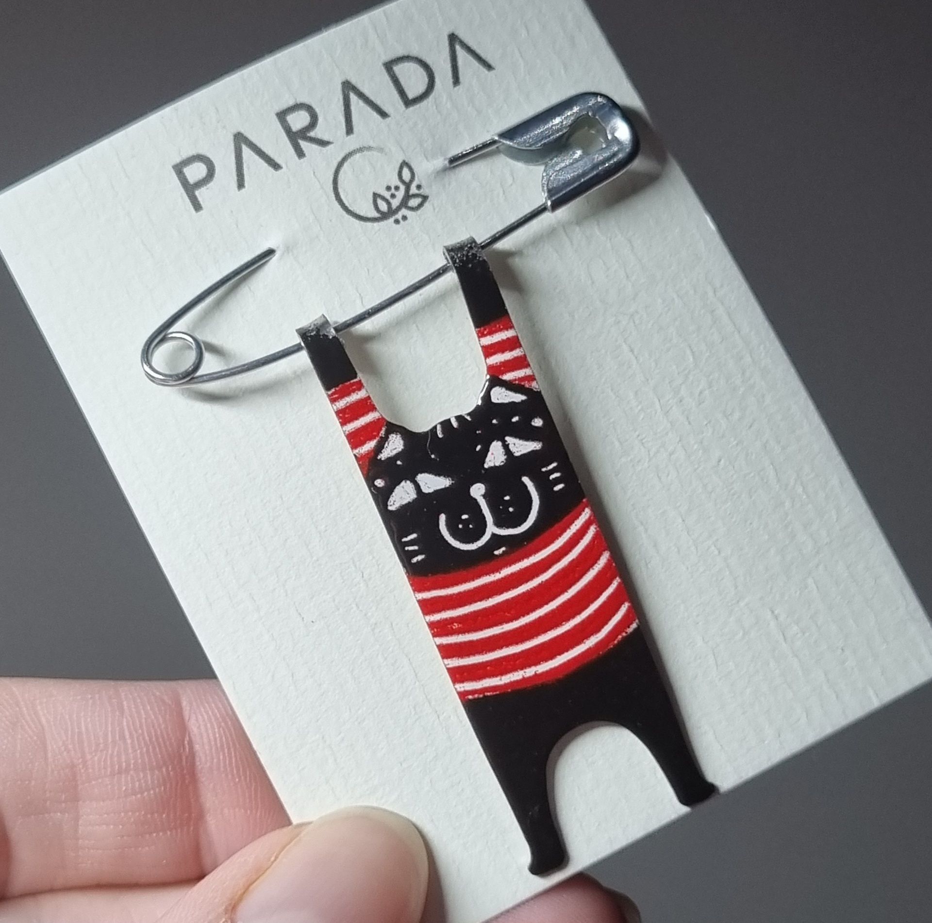 Ručně vyrobená smaltovaná brož. Motiv je vyřízlý z nerez plíšku na který je umístěn brožový můstek.