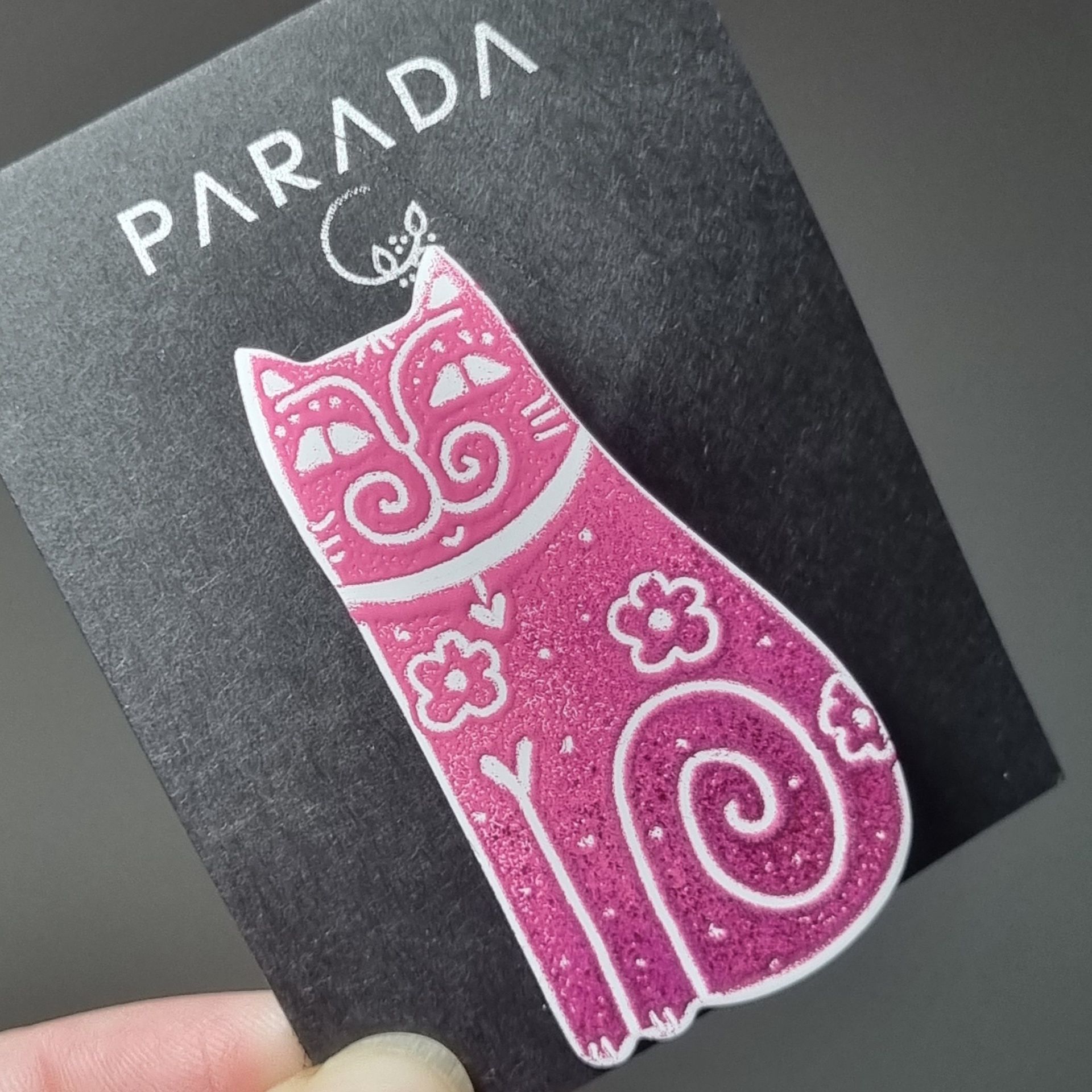 Brož smaltovaná - kocour růžovofialový