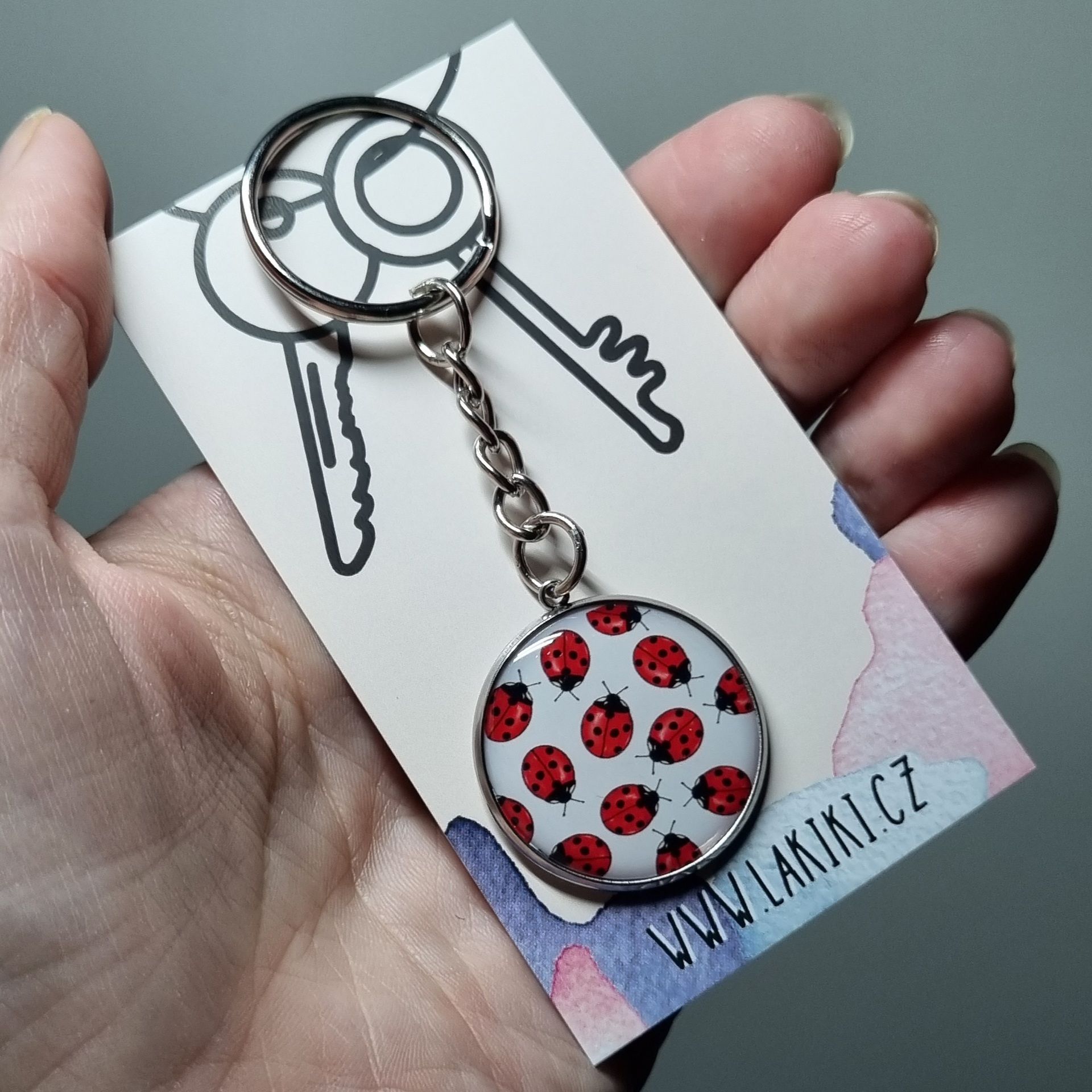 Přívěsek na klíče s autorským motivem. Motiv je ukrytý pod křišťálově čirou čočkou, která dodává šperku hloubku a lesk. Kovový základ z kvalitní nerezové oceli zajišťuje dlouhou životnost.