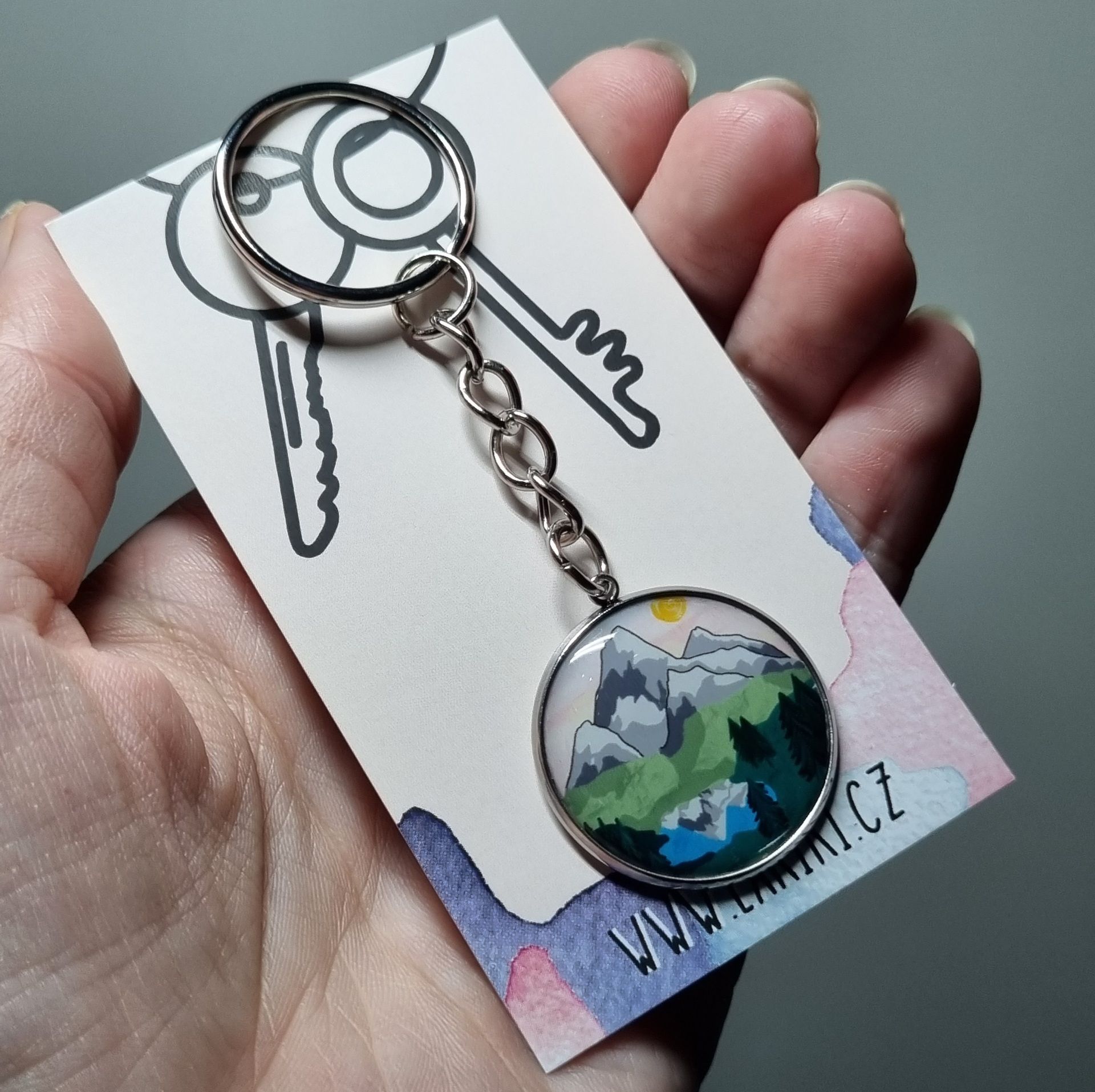 Přívěsek na klíče s autorským motivem. Motiv je ukrytý pod křišťálově čirou čočkou, která dodává šperku hloubku a lesk. Kovový základ z kvalitní nerezové oceli zajišťuje dlouhou životnost.