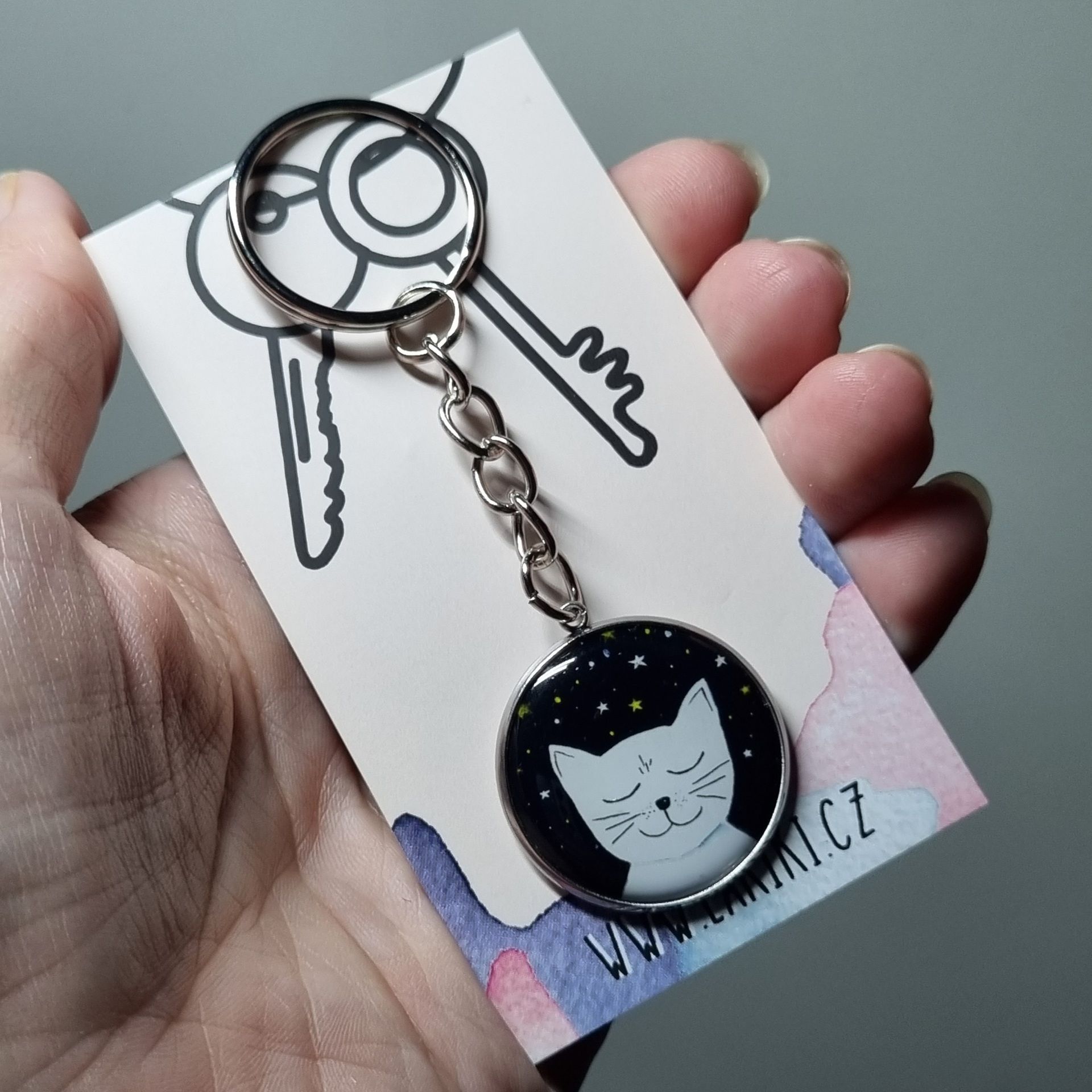 Přívěsek na klíče s autorským motivem. Motiv je ukrytý pod křišťálově čirou čočkou, která dodává šperku hloubku a lesk. Kovový základ z kvalitní nerezové oceli zajišťuje dlouhou životnost.