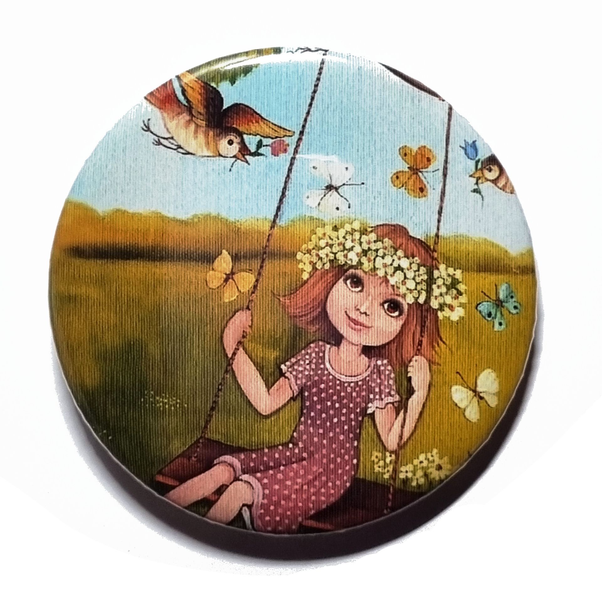 Kapesní zrcátko s autorským motivem české výtvarnice Zuzany Honsové. Z jedné strany je autorský motiv, z druhé strany klasické kosmetické zrcátko.