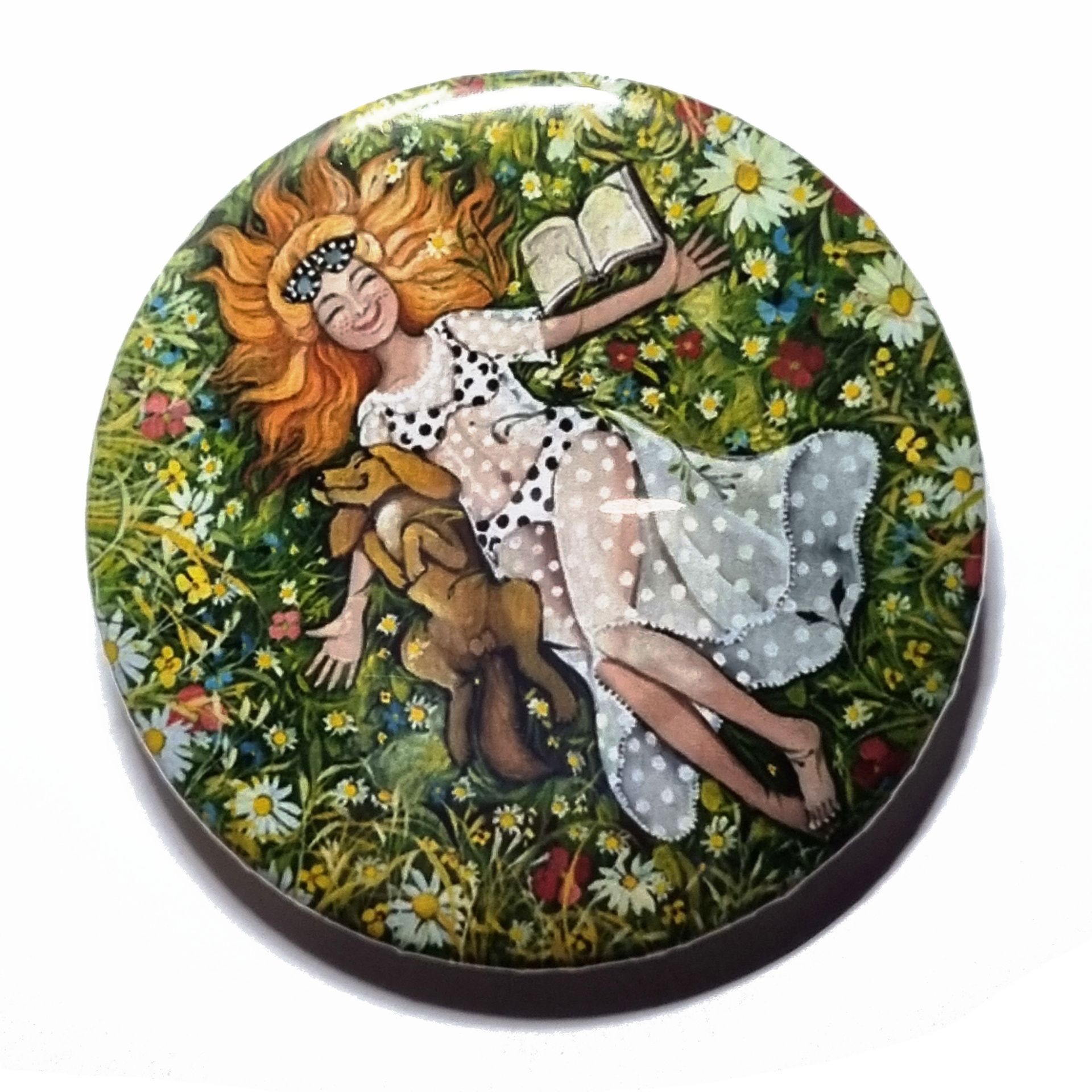 Kapesní zrcátko s autorským motivem české výtvarnice Zuzany Honsové. Z jedné strany je autorský motiv, z druhé strany klasické kosmetické zrcátko.
