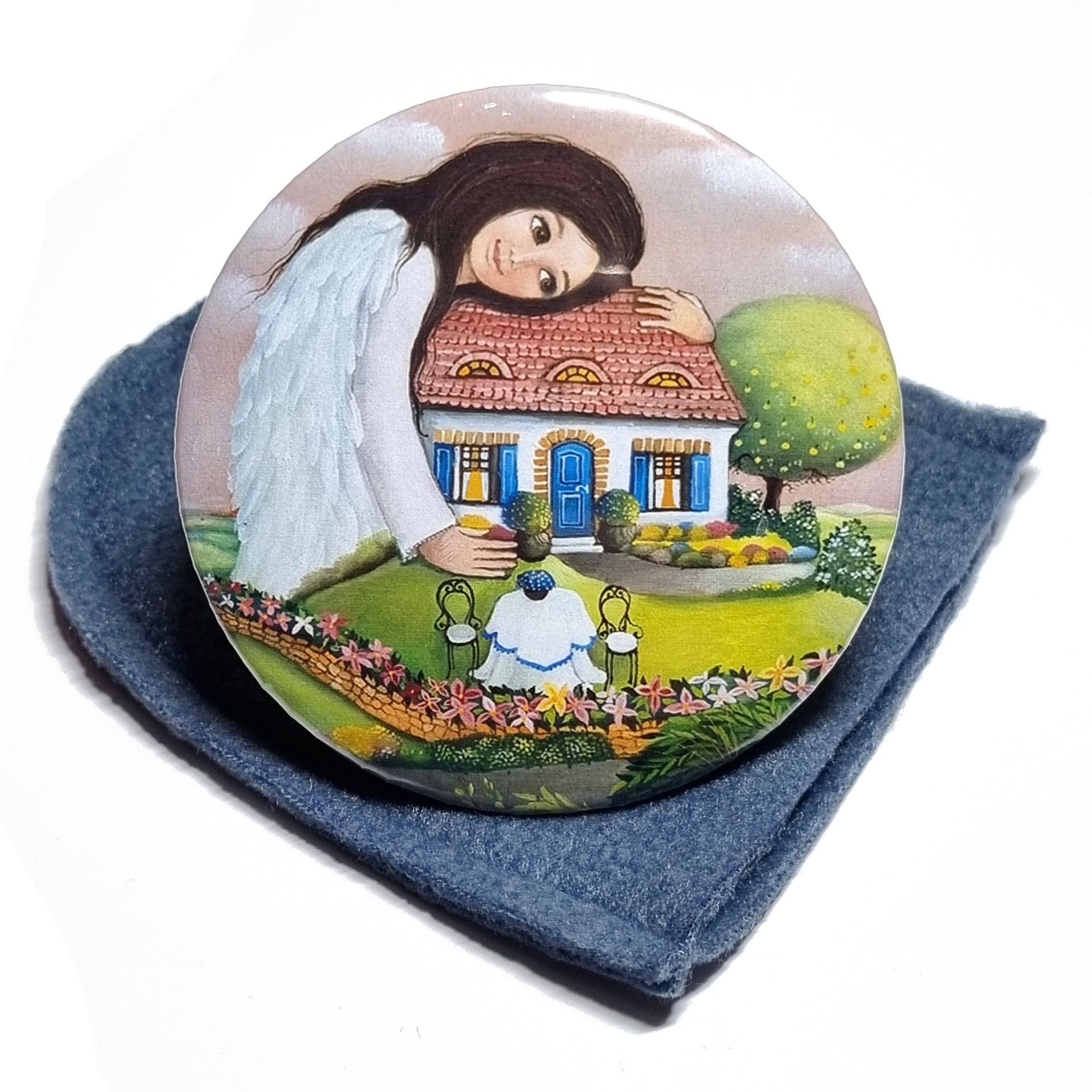 Velké kapesní zrcátko s autorským motivem české výtvarnice Zuzany Honsové. Z jedné strany je autorský motiv, z druhé strany klasické kosmetické zrcátko. K zrcátku patří měkká taštička, která zrcátko ochrání třeba v kabelce. Barva taštičky nemusí odpovídat fotografii. Barvy taštiček podle aktuální skladové zásoby.