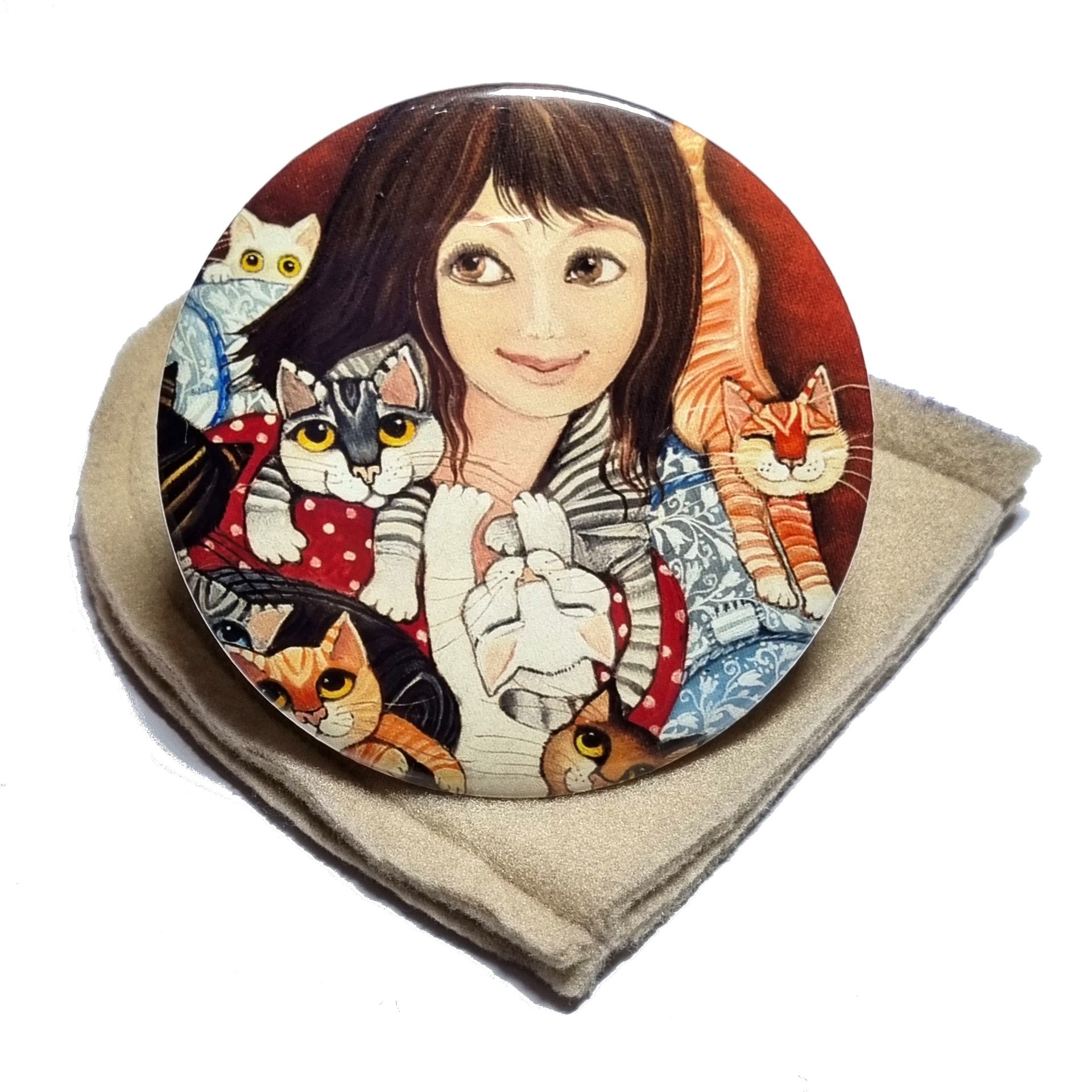 Velké kapesní zrcátko s autorským motivem české výtvarnice Zuzany Honsové. Z jedné strany je autorský motiv, z druhé strany klasické kosmetické zrcátko. K zrcátku patří měkká taštička, která zrcátko ochrání třeba v kabelce. Barva taštičky nemusí odpovídat fotografii. Barvy taštiček podle aktuální skladové zásoby.