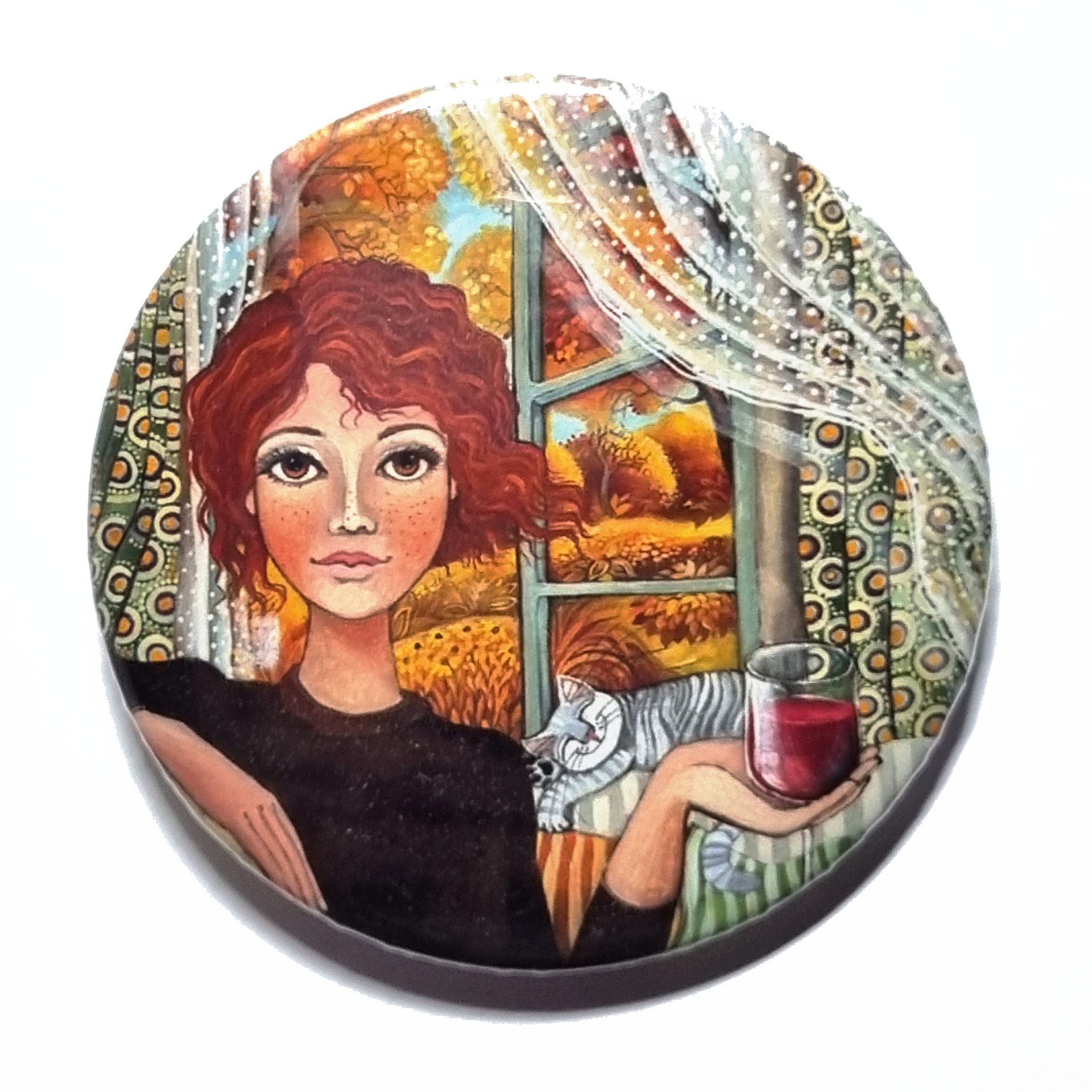 Kapesní zrcátko s autorským motivem české výtvarnice Zuzany Honsové. Z jedné strany je autorský motiv, z druhé strany klasické kosmetické zrcátko.
