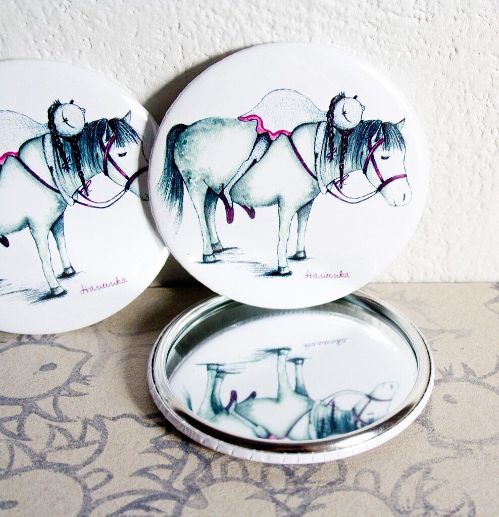 Velké praktické zrcátko s motivem autorské ilustrace značky Hanunka.