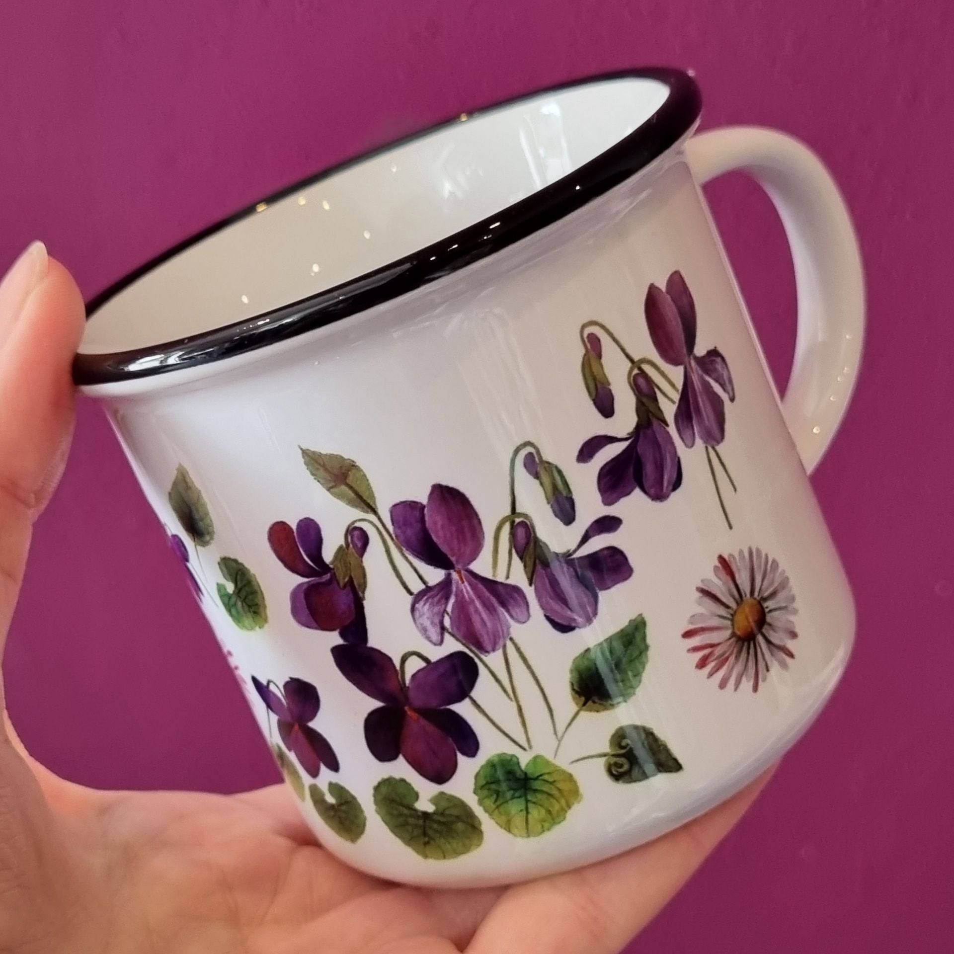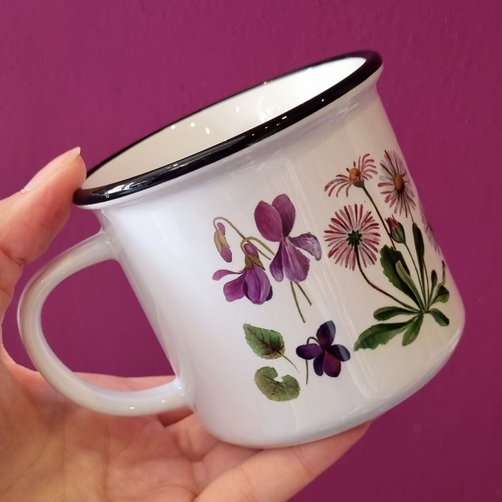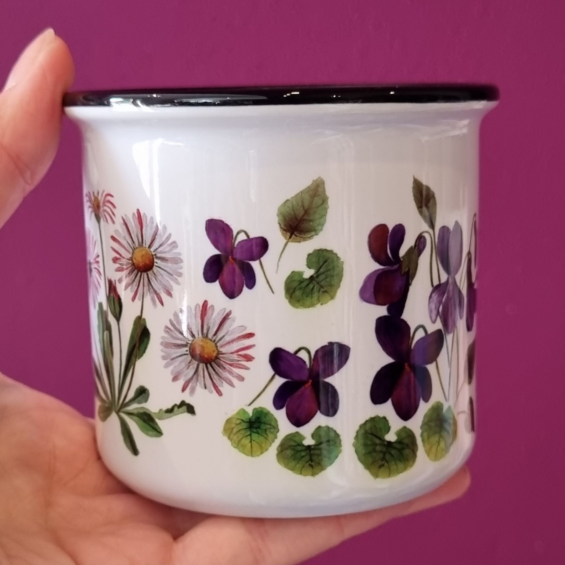 Keramický hrneček "neplecháček" s autorskou ilustrací. Svým tvarem i velikostí odpovídá a napodobuje smaltovaný plecháček, ale ve skutečnosti je z keramiky s lesklou glazurou.
