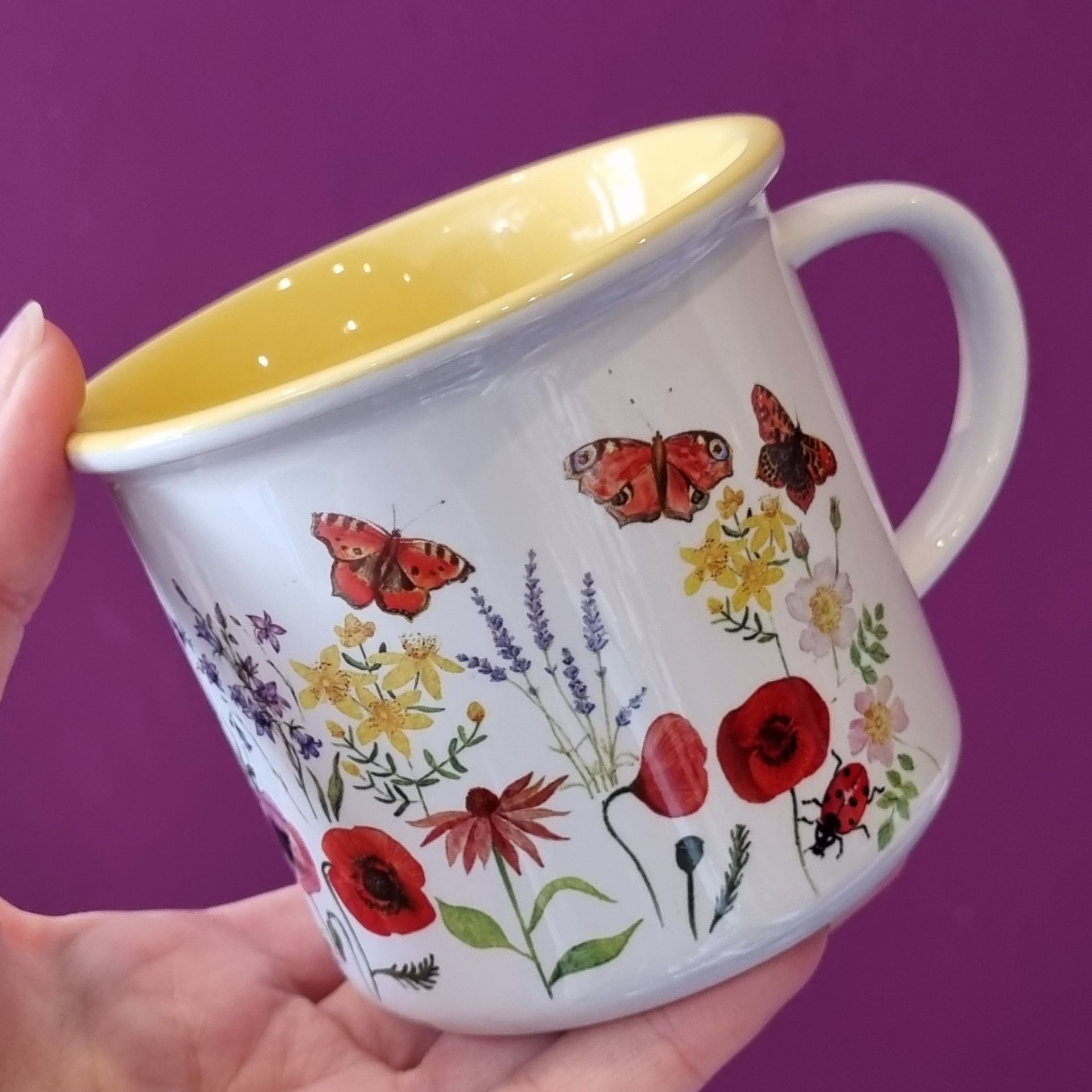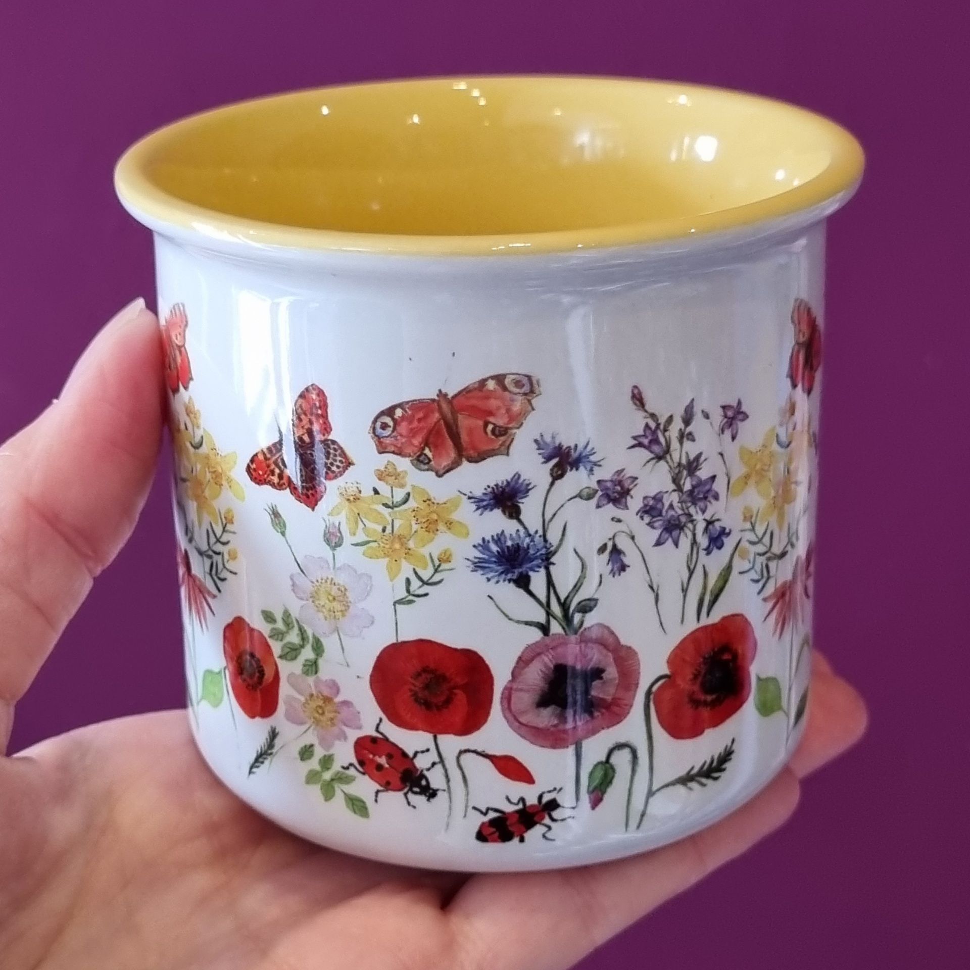 Keramický hrneček "neplecháček" s autorskou ilustrací. Svým tvarem i velikostí odpovídá a napodobuje smaltovaný plecháček, ale ve skutečnosti je z keramiky s lesklou glazurou.