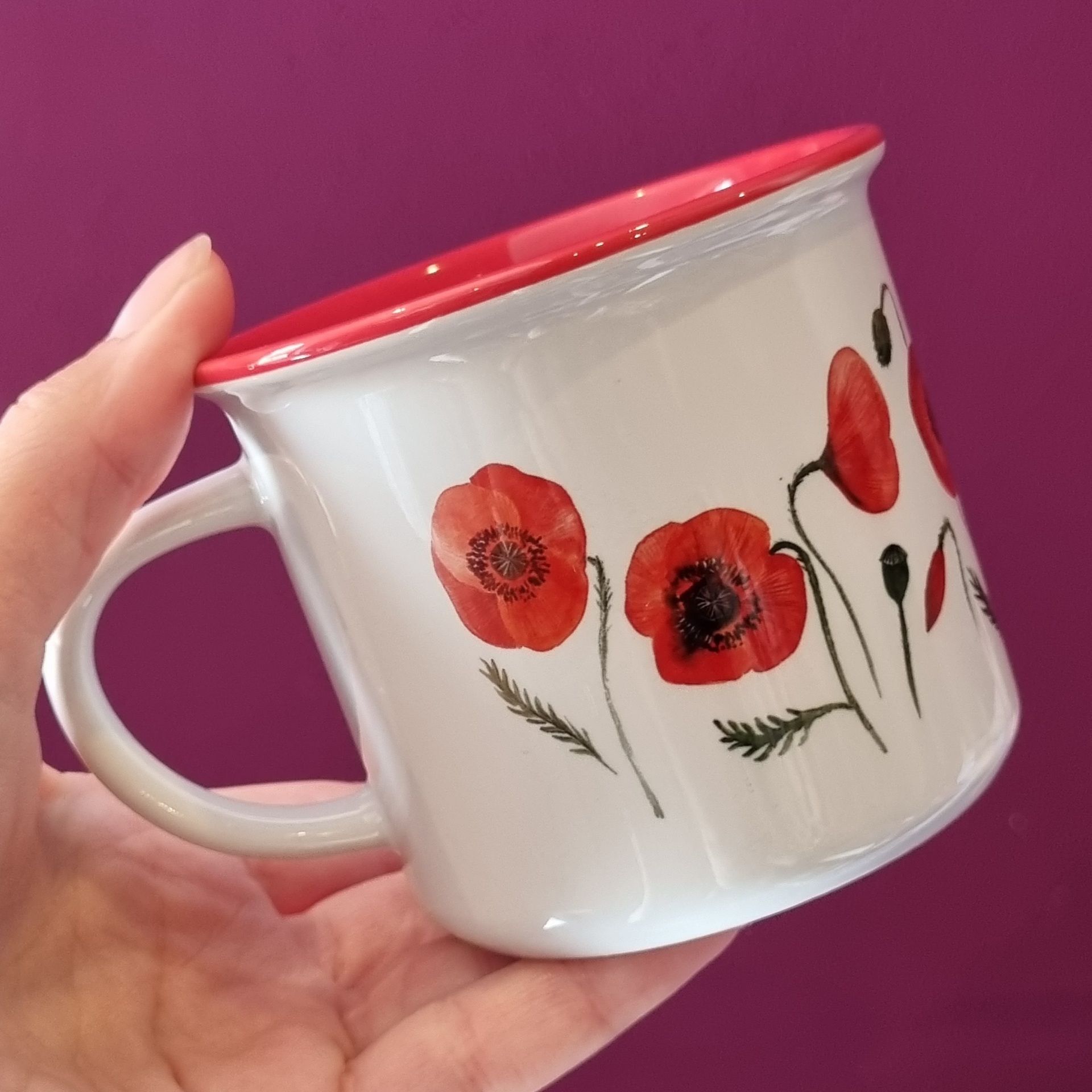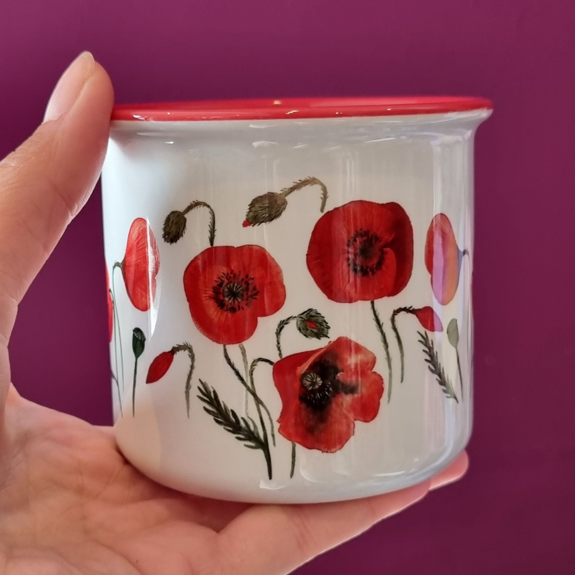 Keramický hrneček "neplecháček" s autorskou ilustrací. Svým tvarem i velikostí odpovídá a napodobuje smaltovaný plecháček, ale ve skutečnosti je z keramiky s lesklou glazurou.