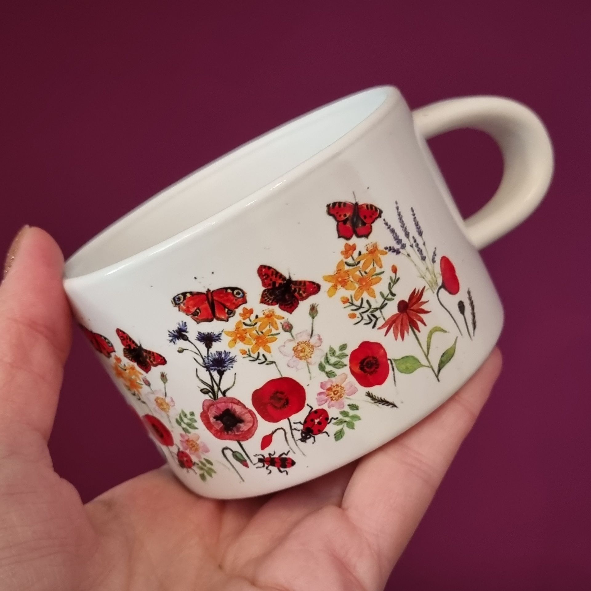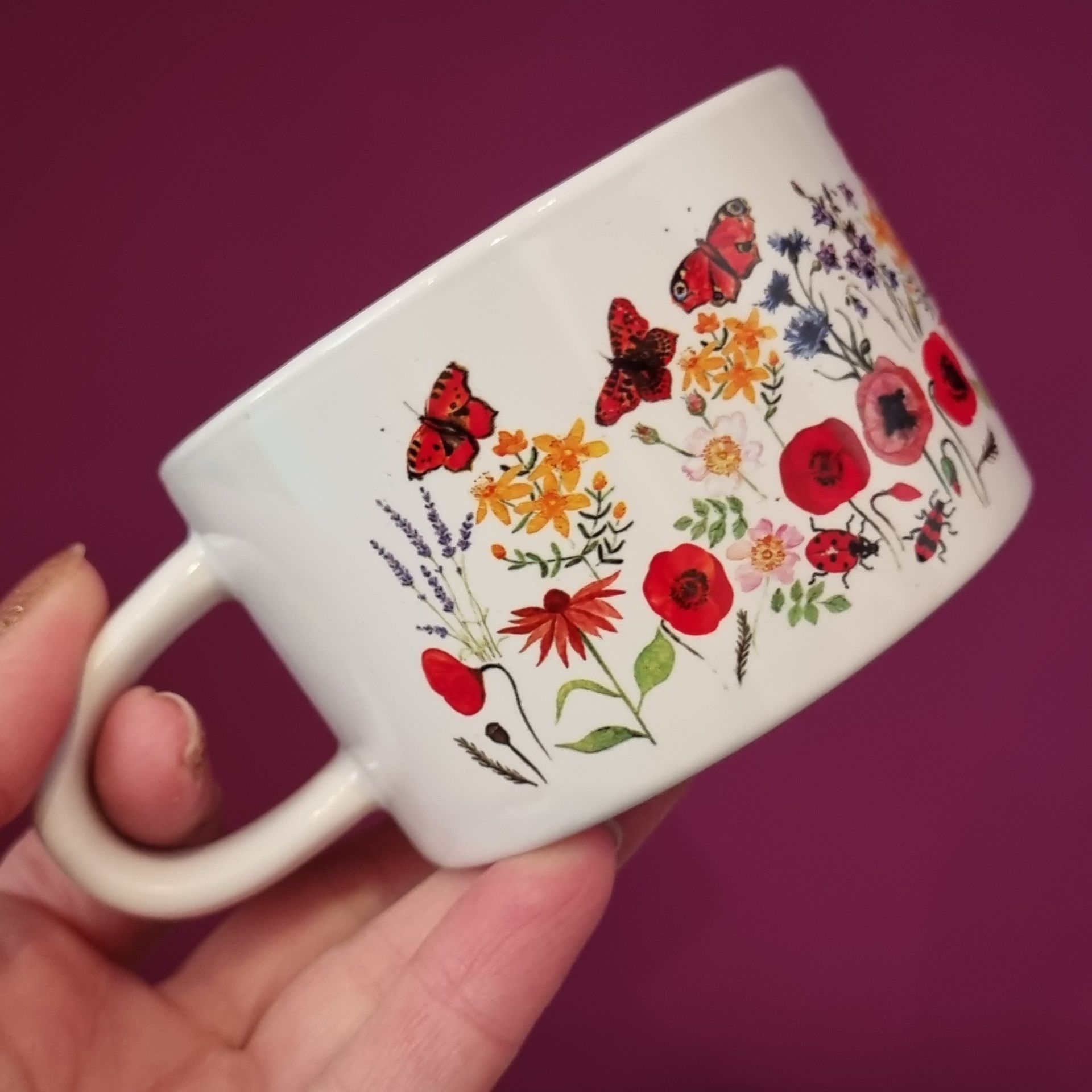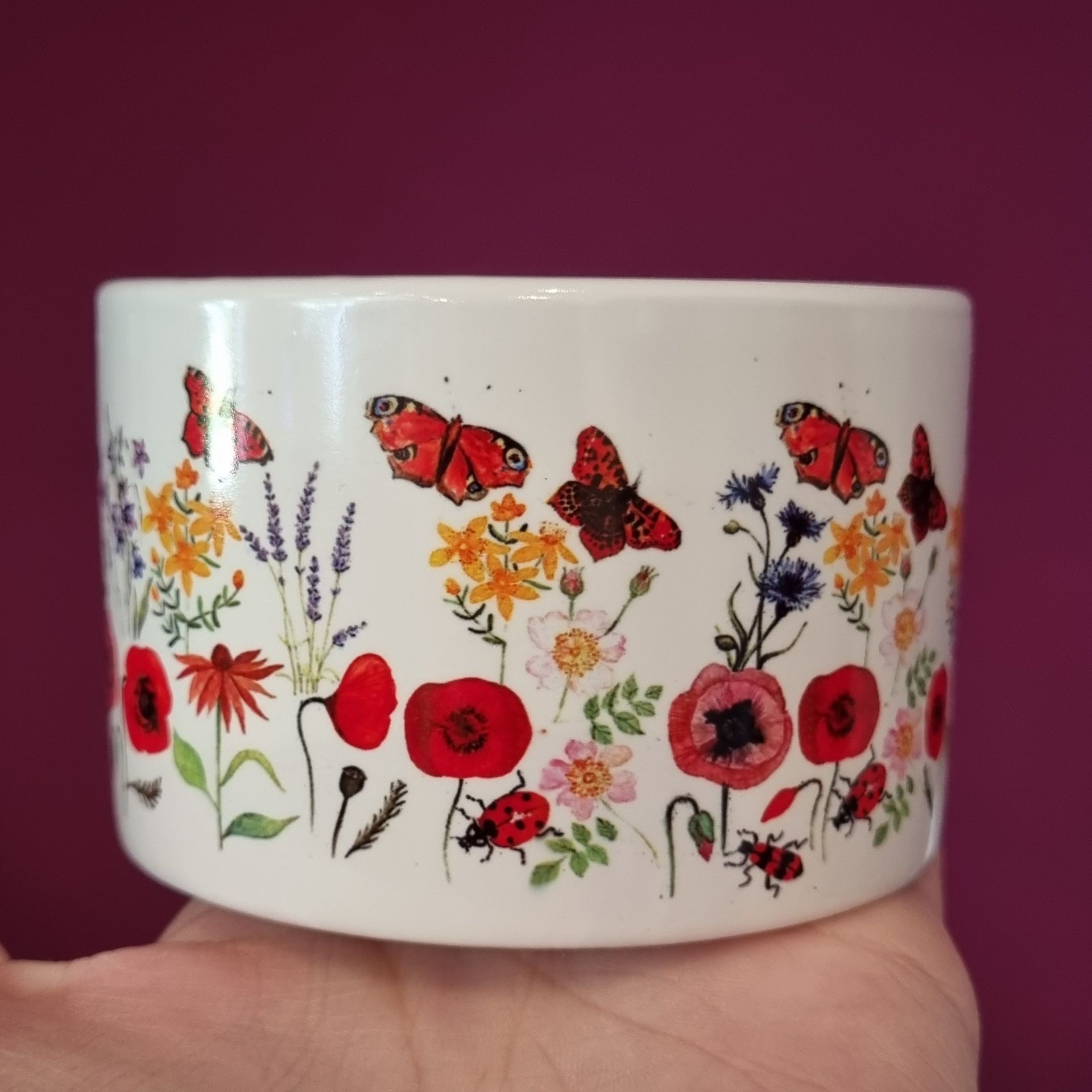 Hrneček makronka - letní kvítí a motýli