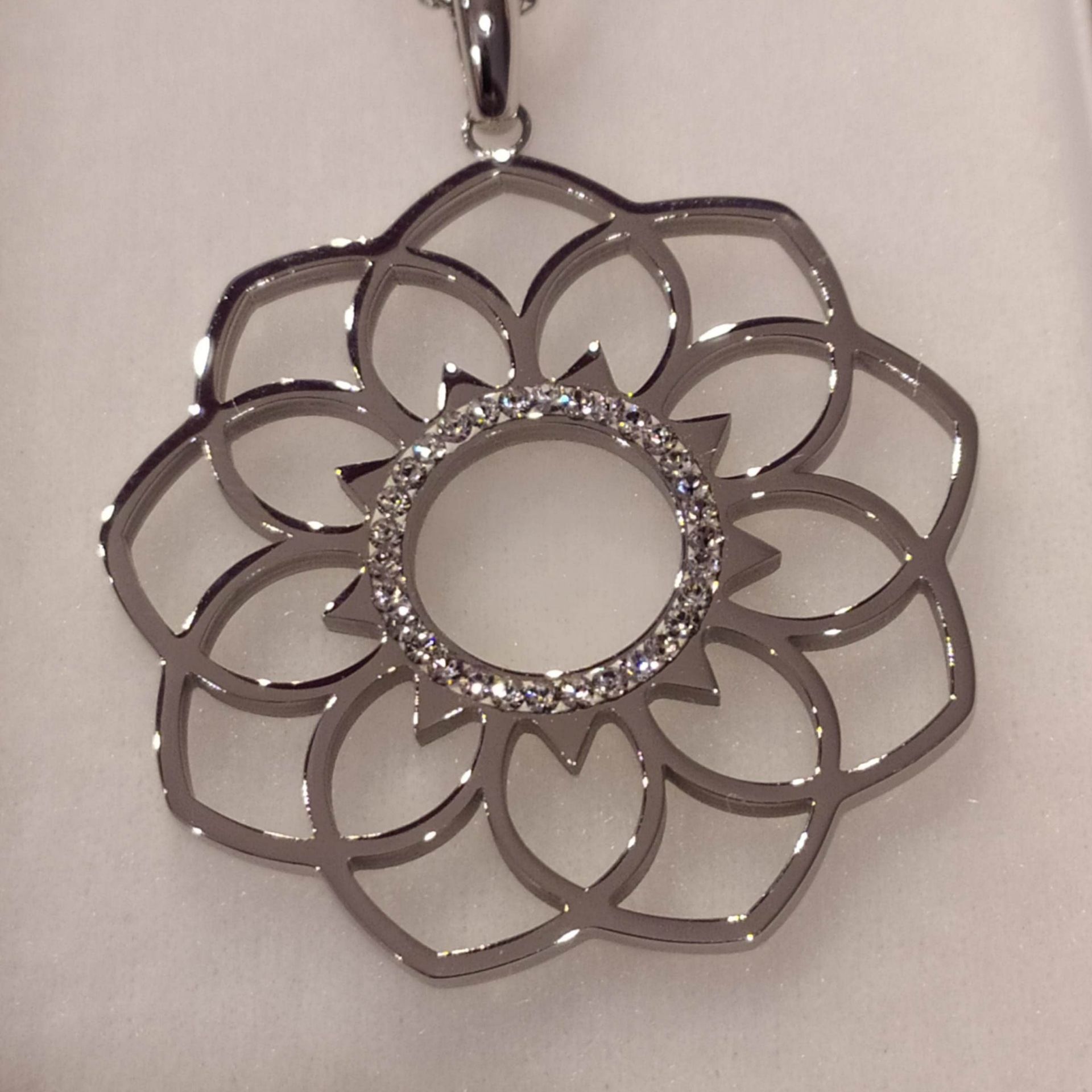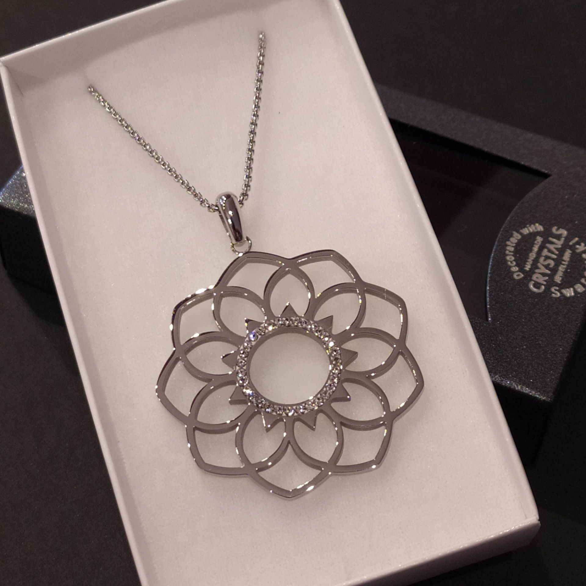 Ocelový náhrdelník s krystaly Swarovski velký květ