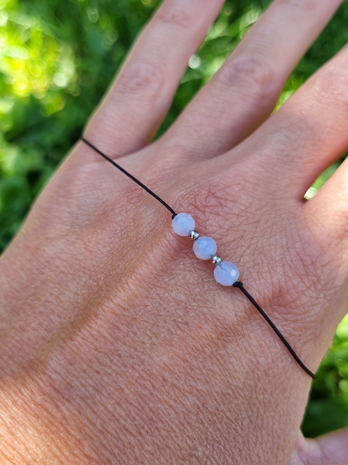 Šňůrkový náramek s drobnými korálky polodrahokamu CHALCEDON (4mm) zdobené nerezovými korálky (2mm).