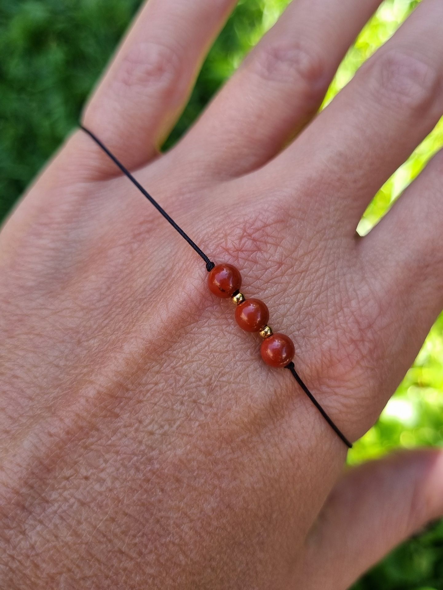Náramek má nastavitelnou velikost díky posuvným uzlíkům. Jednoduše se tedy přizpůsobí šířce Vašeho zápěstí. Korálky jsou navlečeny na tenké pevné nylonové šňůrce.