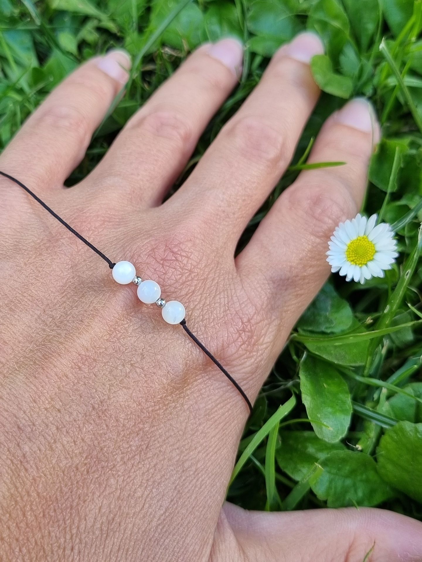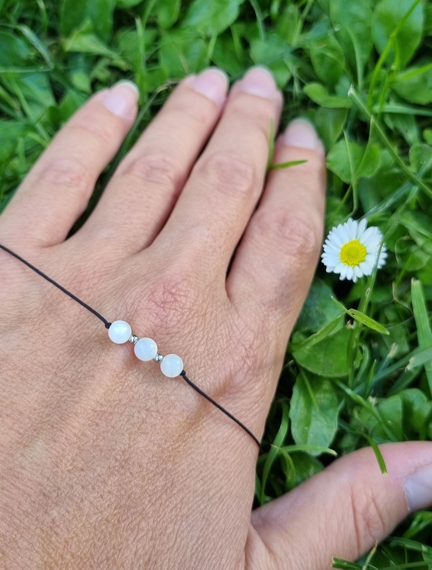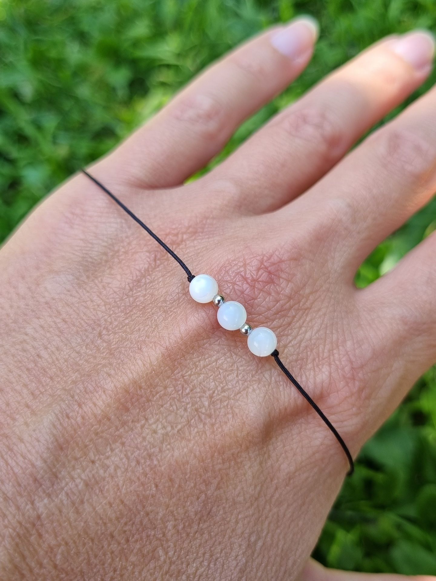 Náramek má nastavitelnou velikost díky posuvným uzlíkům. Jednoduše se tedy přizpůsobí šířce Vašeho zápěstí. Korálky jsou navlečeny na tenké pevné nylonové šňůrce.