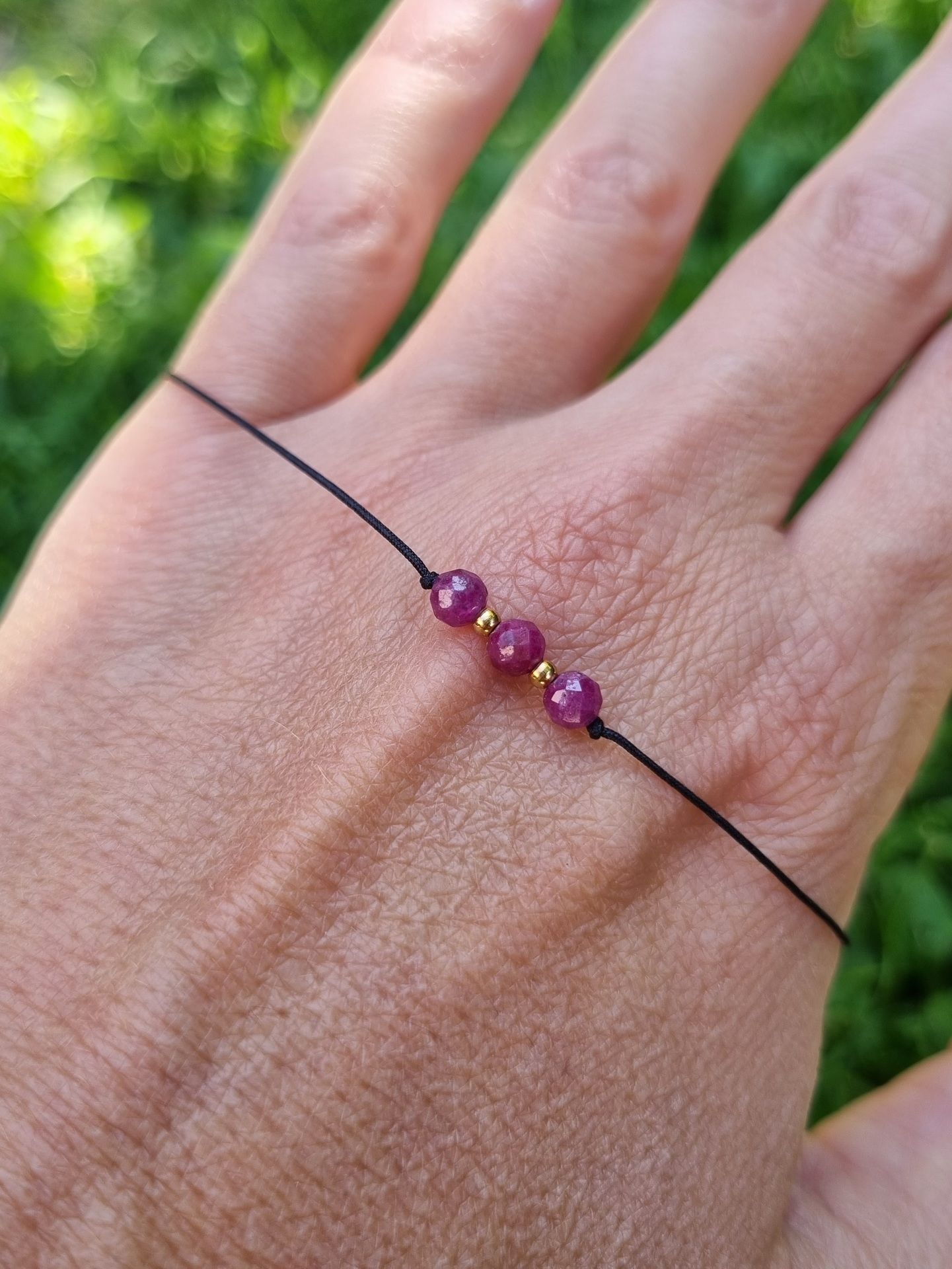 Šňůrkový náramek s drobnými korálky polodrahokamu RUBÍN (4mm) zdobené nerezovými korálky.
