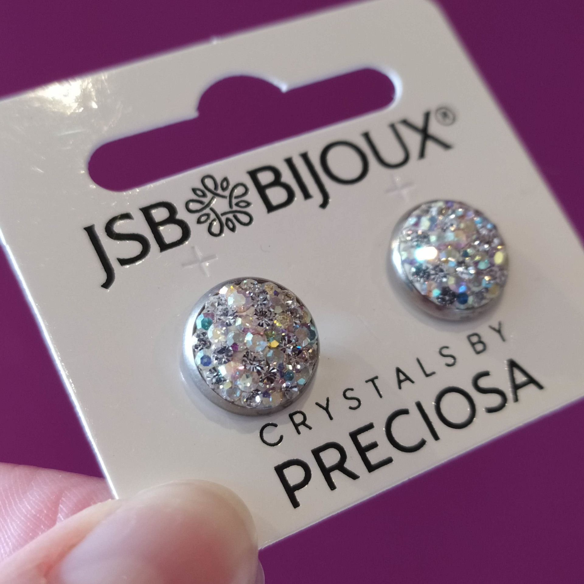 Puzetkové náušničky vykládané drobnými krystaly od společnosti Preciosa.