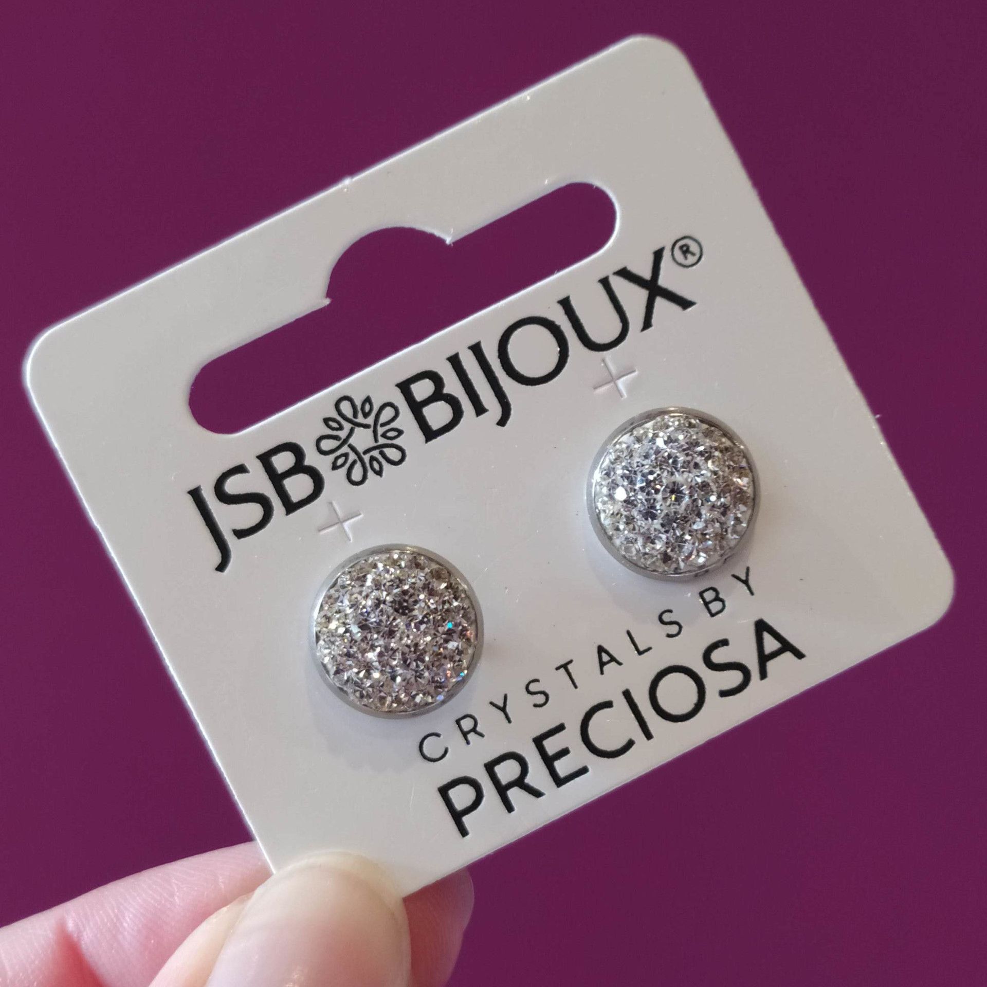 Puzetkové náušničky vykládané drobnými krystaly od společnosti Preciosa.