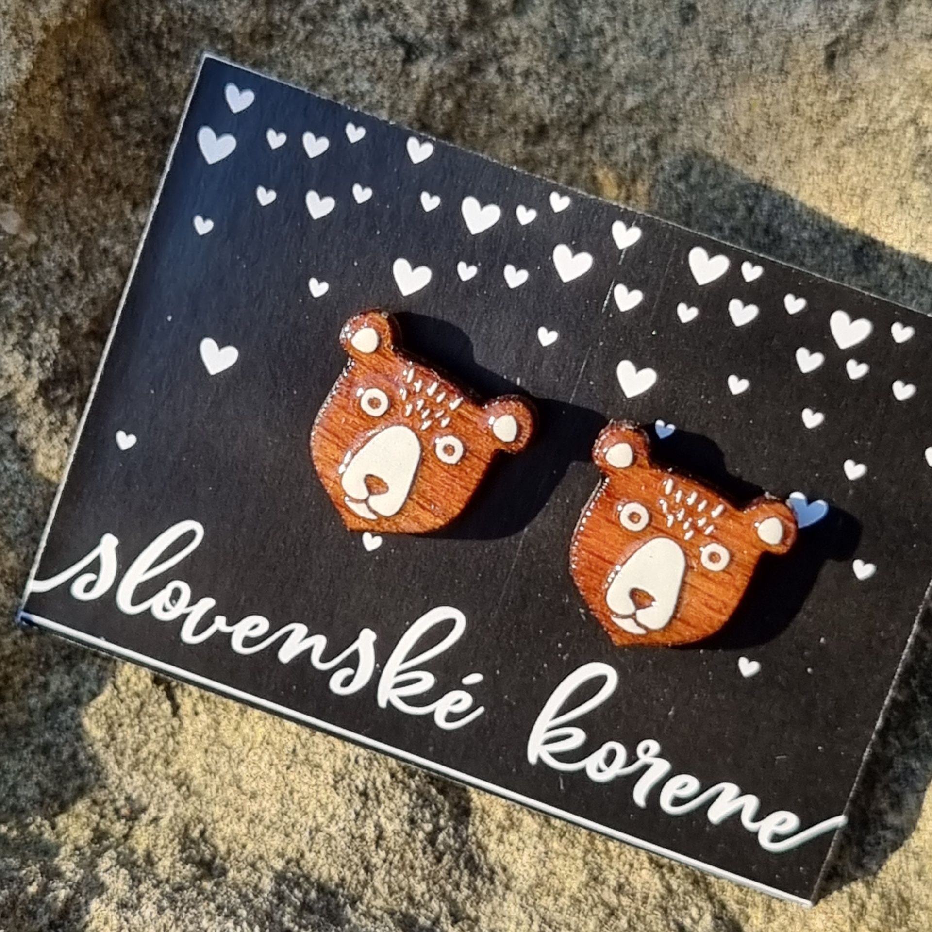 Dřevěné malované náušnice - medvídek