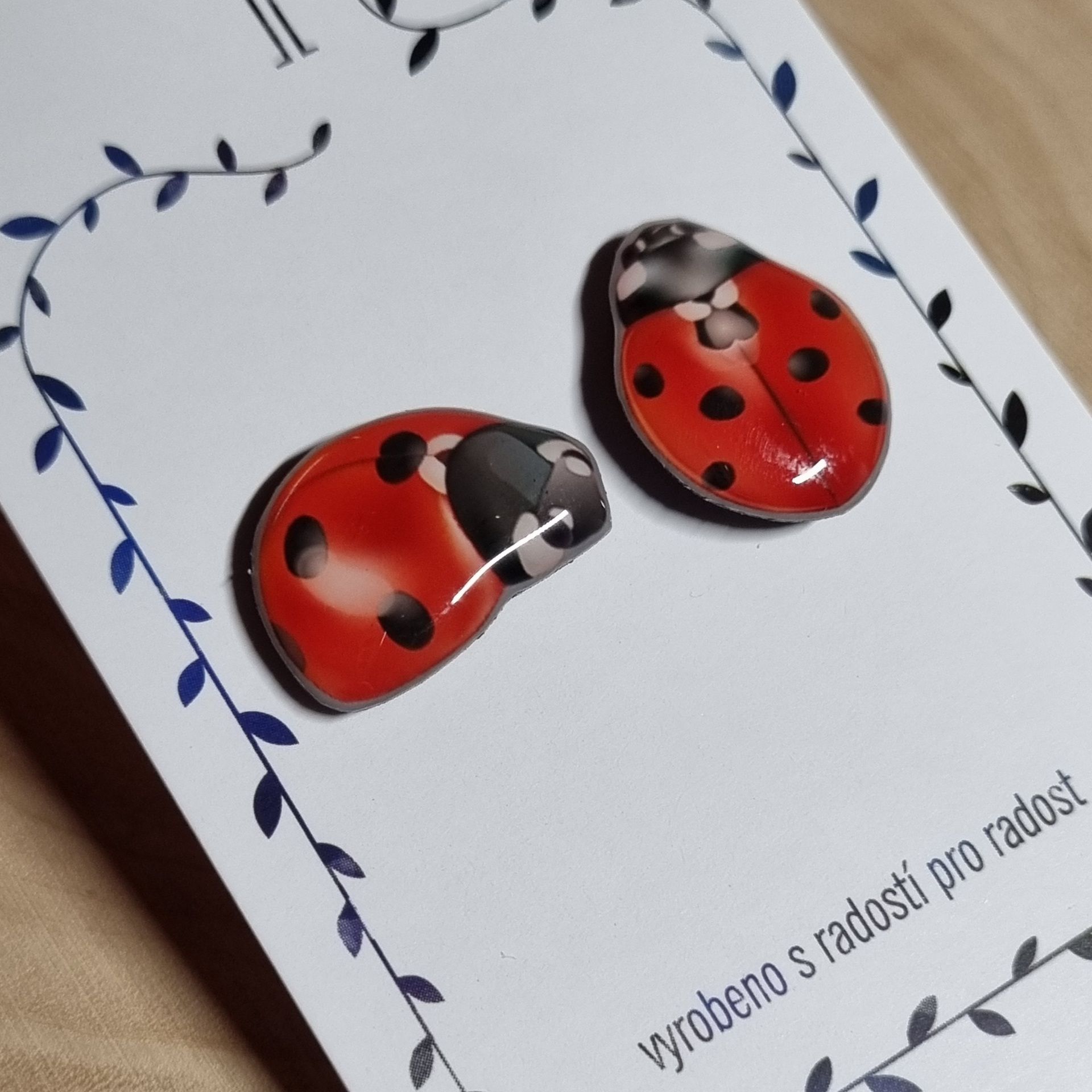 Originální náušnice s autorským grafickým motivem zalitým do křišťálové pryskyřice a s pevně přilepenou puzetkou z nerezové oceli, která se zapíná motýlkem.
