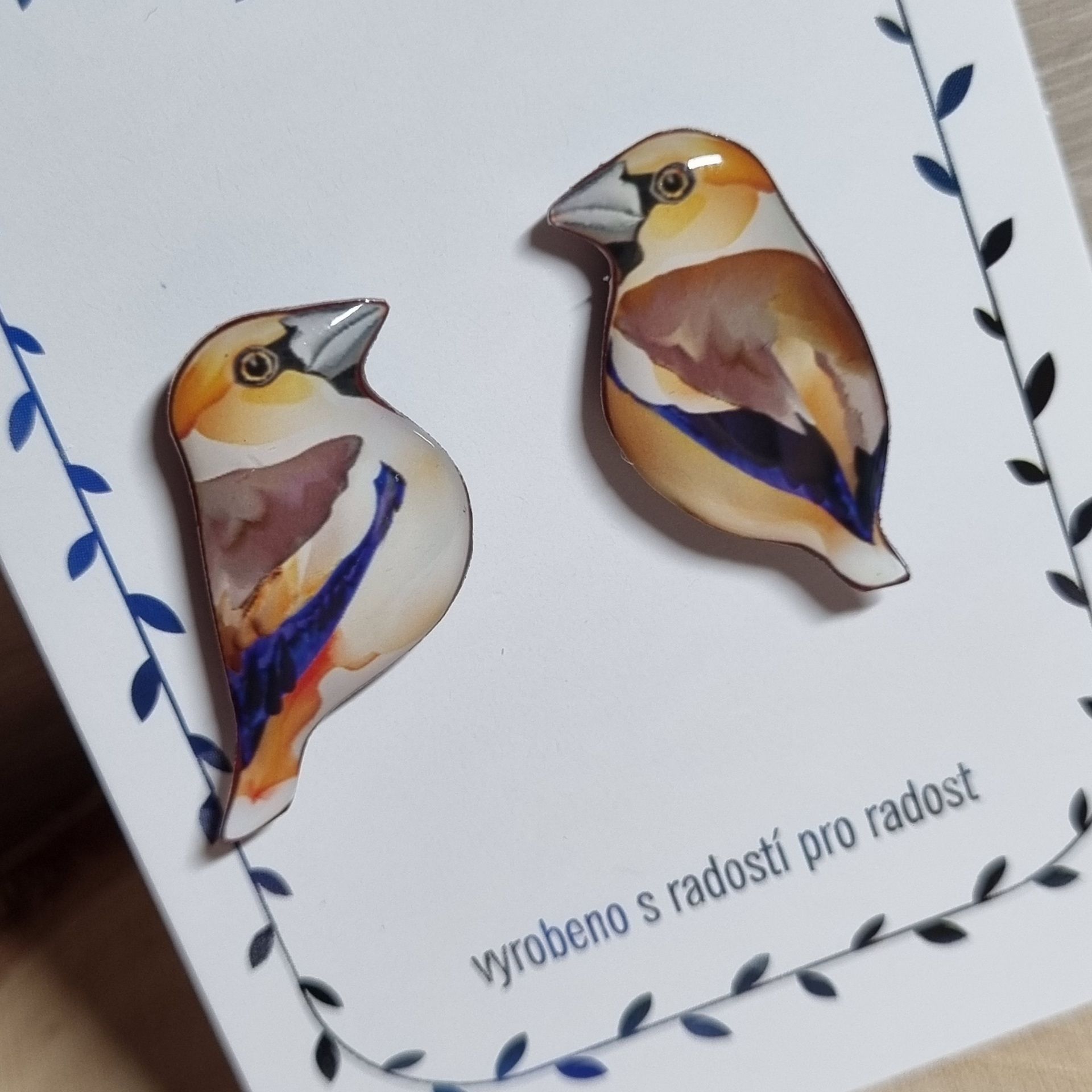 Originální náušnice s autorským grafickým motivem zalitým do křišťálové pryskyřice a s pevně přilepenou puzetkou z nerezové oceli, která se zapíná motýlkem.