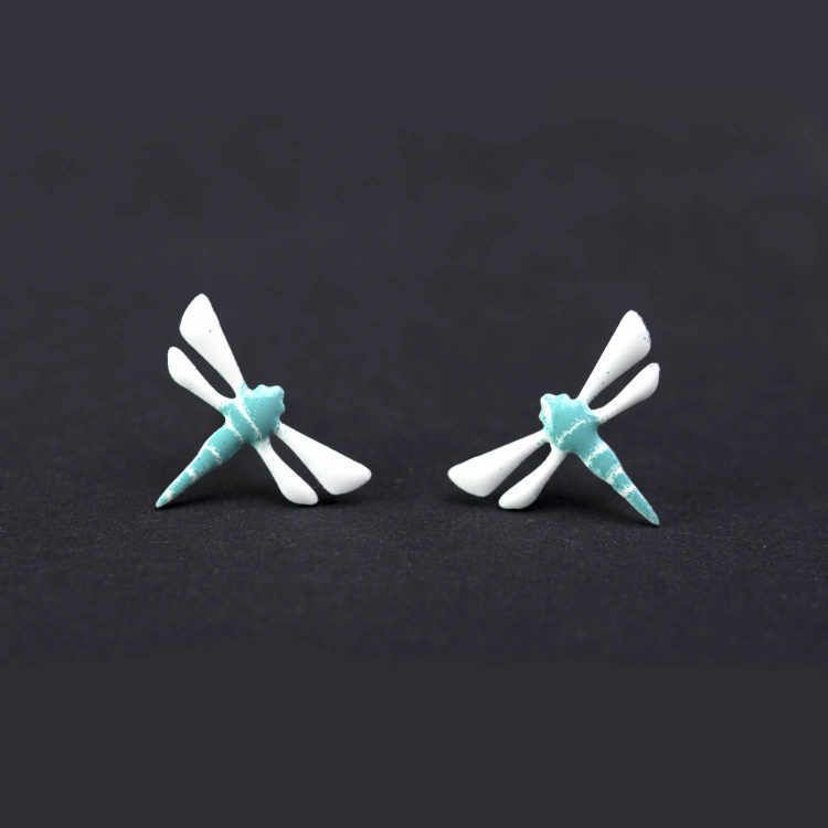 Náušnice smaltované - vážky pecky