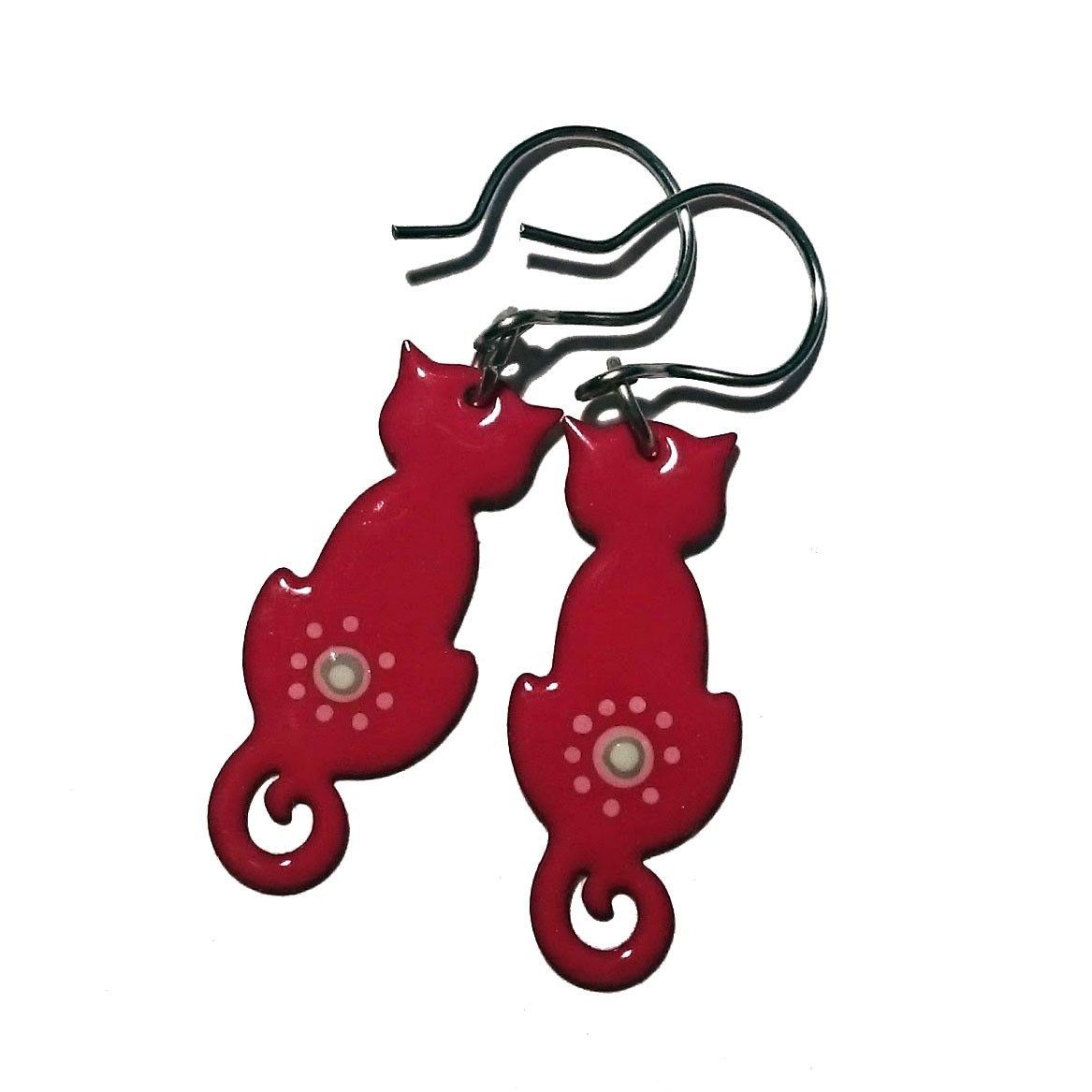 Originální smaltované náušnice. Motiv je vyřízlý z nerez plíšku, který je zdoben smaltem. Háček je vyroben z chirurgické oceli. Náušnice jsou tedy hypoalergenní, a proto jsou vhodné i pro alergiky a děti.