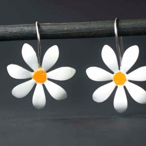 Originální smaltované náušnice. Motiv je vyřízlý z nerez plíšku, který je zdoben smaltem. Háček je vyroben z chirurgické oceli. Náušnice jsou tedy hypoalergenní, a proto jsou vhodné i pro alergiky.