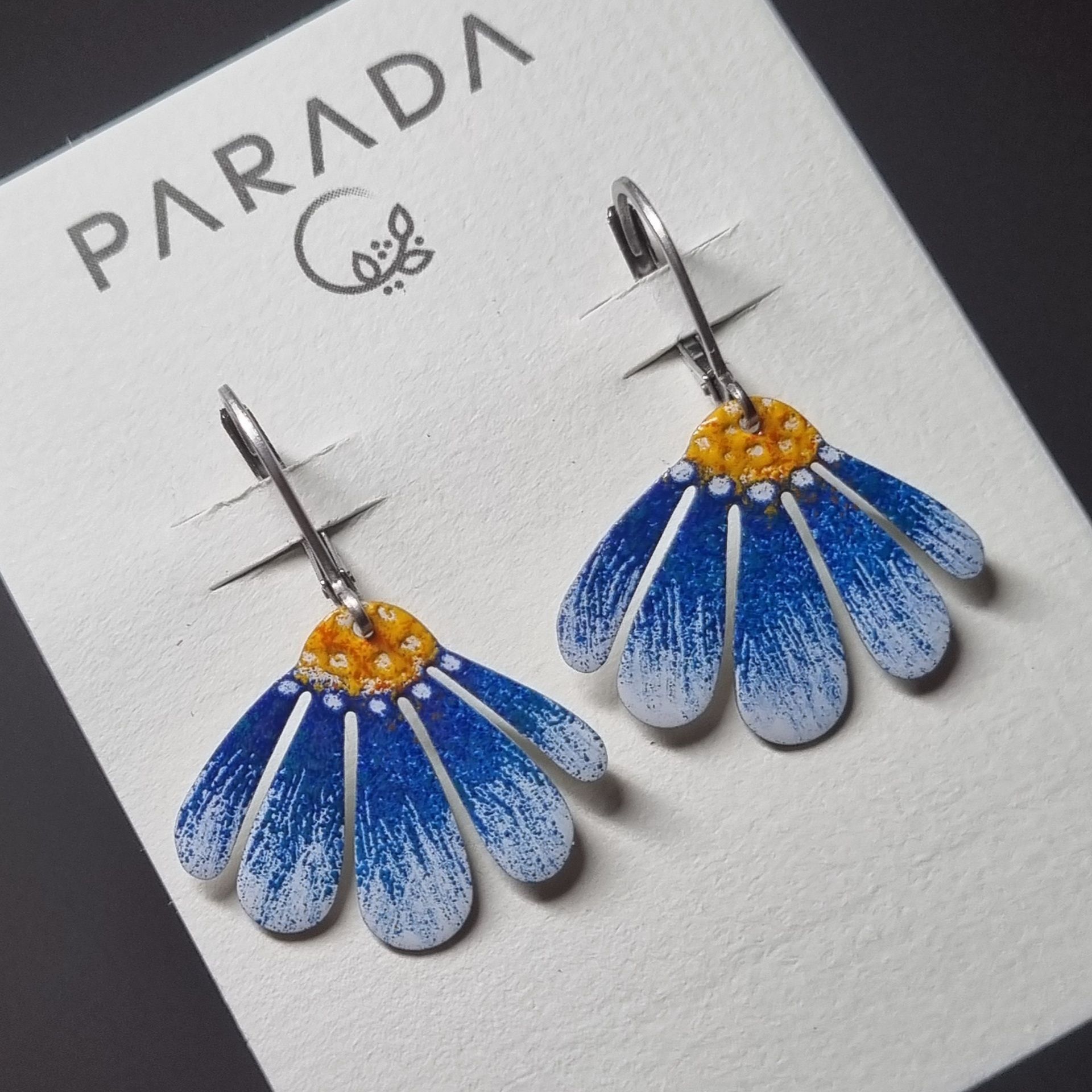 Tyto ručně malované smaltované náušnice pocházeji z malé autorské dílny. Jsou vyrobeny z nerezové oceli. Jsou lehoučké a ideální na každodenní nošení. V průběhu času neblednou a nemění barvu.