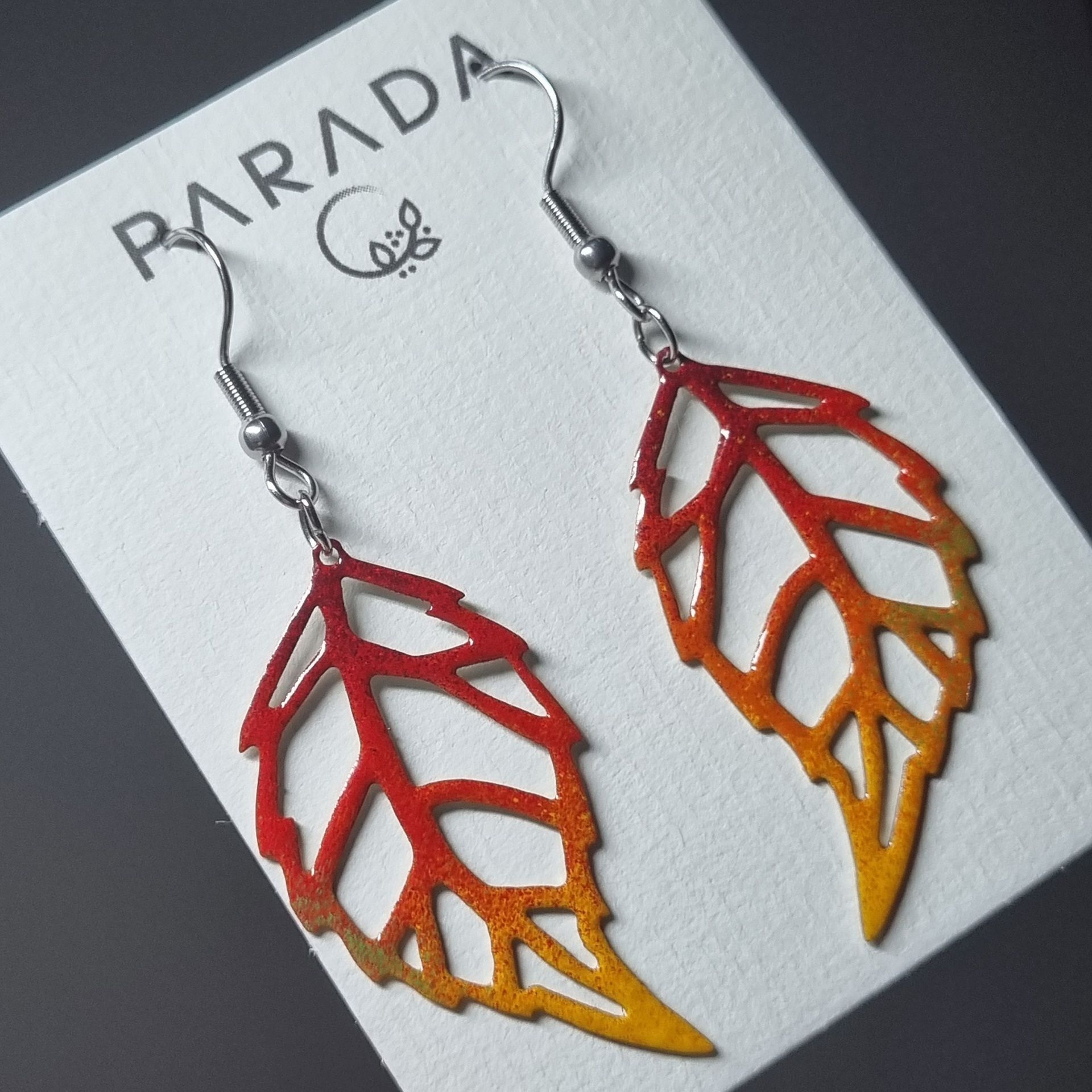 Originální smaltované náušnice. Motiv je vyřízlý z nerez plíšku, který je zdoben smaltem.