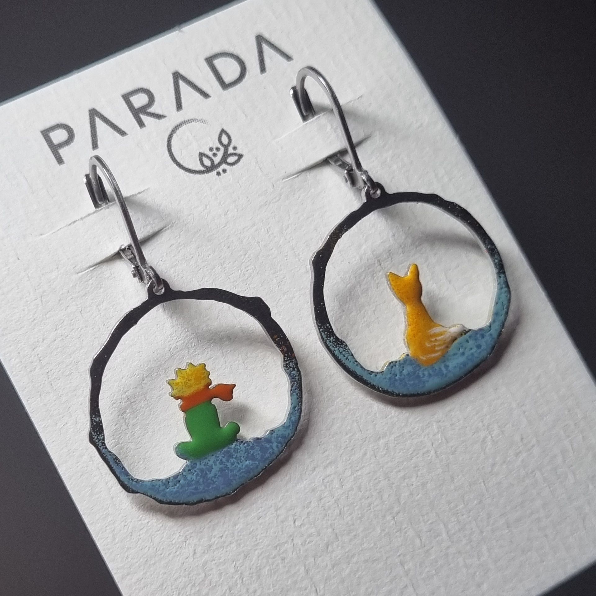 Originální smaltované náušnice. Motiv je vyřízlý z nerez plíšku, který je zdoben smaltem.