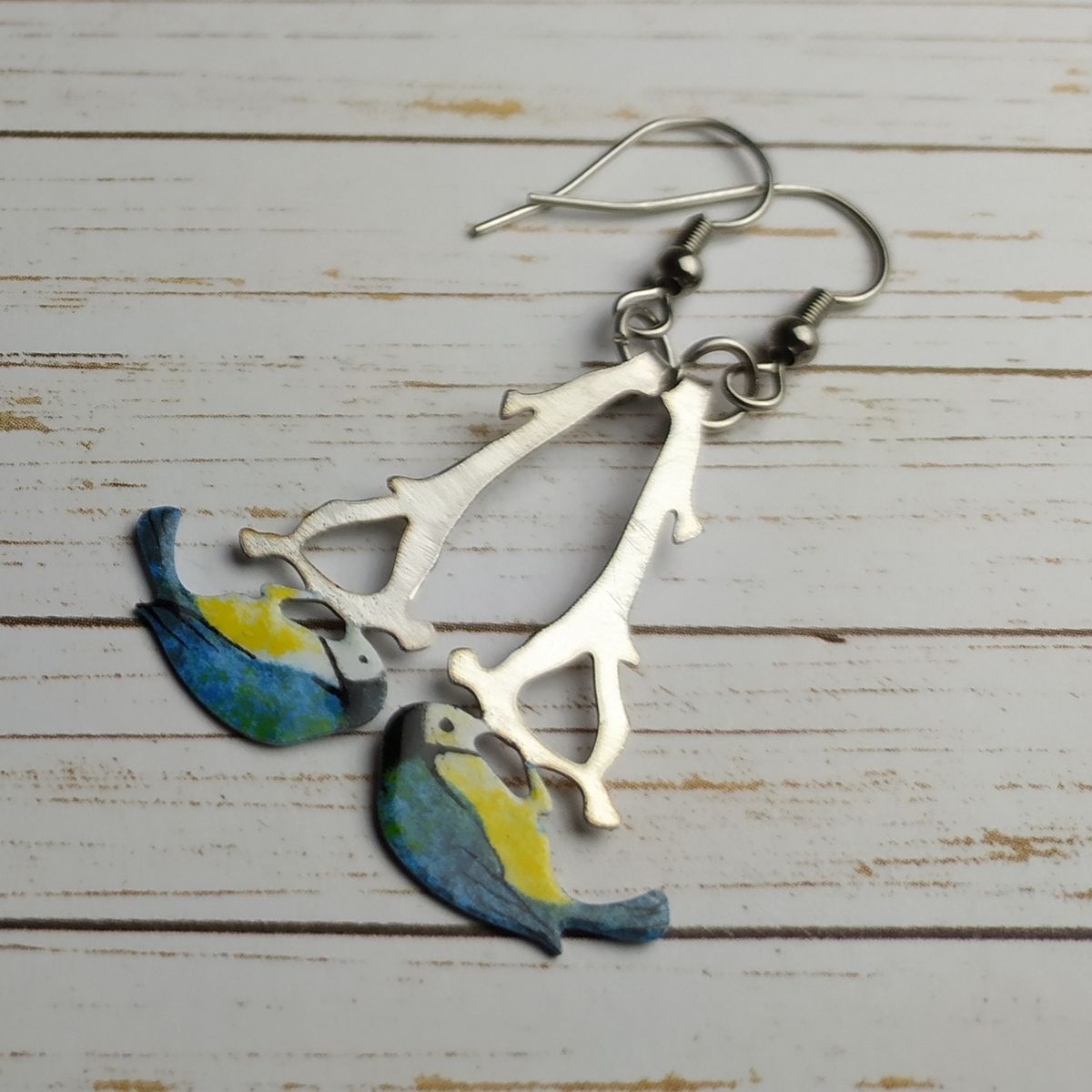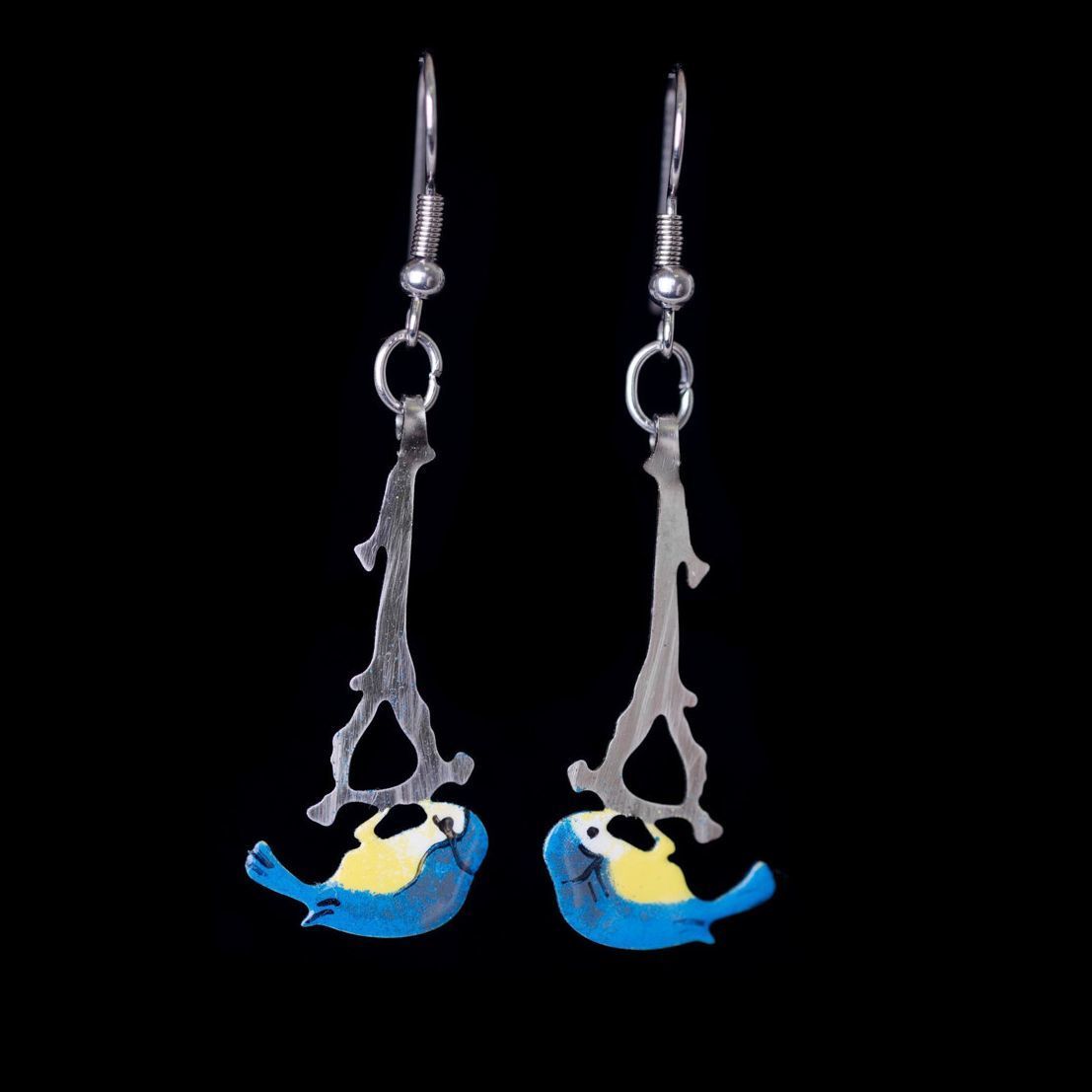 Originální smaltované náušnice. Motiv je vyřízlý z nerez plíšku, který je zdoben smaltem. Háček je vyroben z chirurgické oceli. Náušnice jsou tedy hypoalergenní, a proto jsou vhodné i pro alergiky.