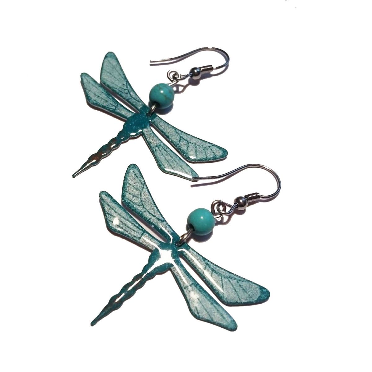 Originální smaltované náušnice. Motiv je vyřízlý z nerez plíšku, který je zdoben smaltem. Háček je vyroben z chirurgické oceli. Náušnice jsou tedy hypoalergenní, a proto jsou vhodné i pro alergiky a děti.